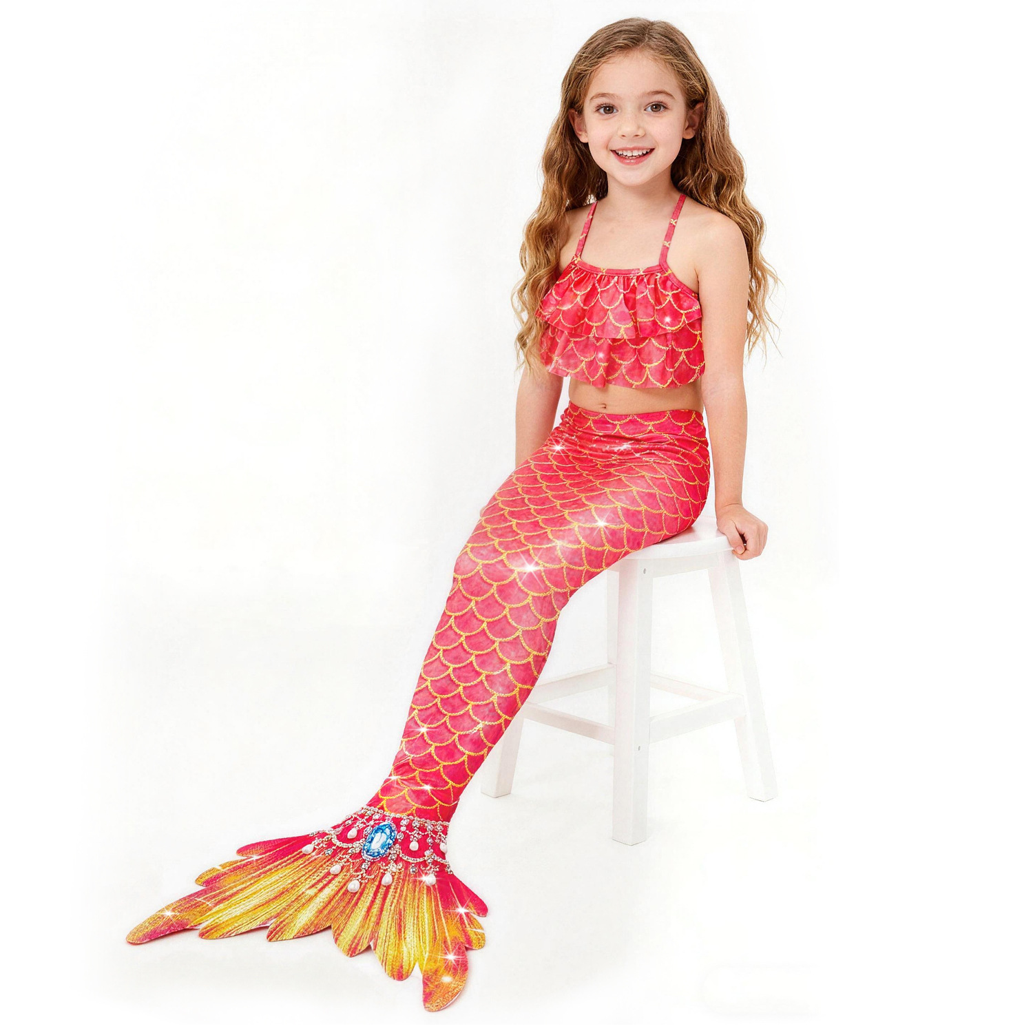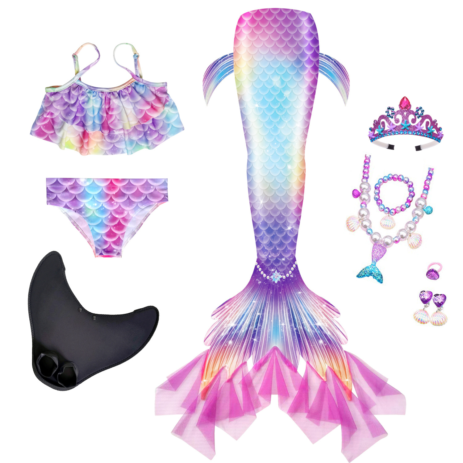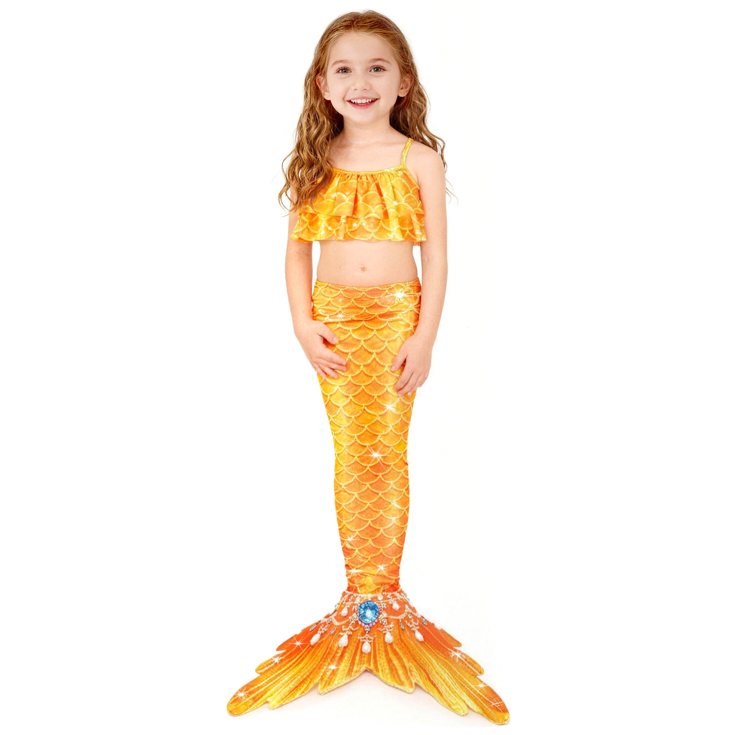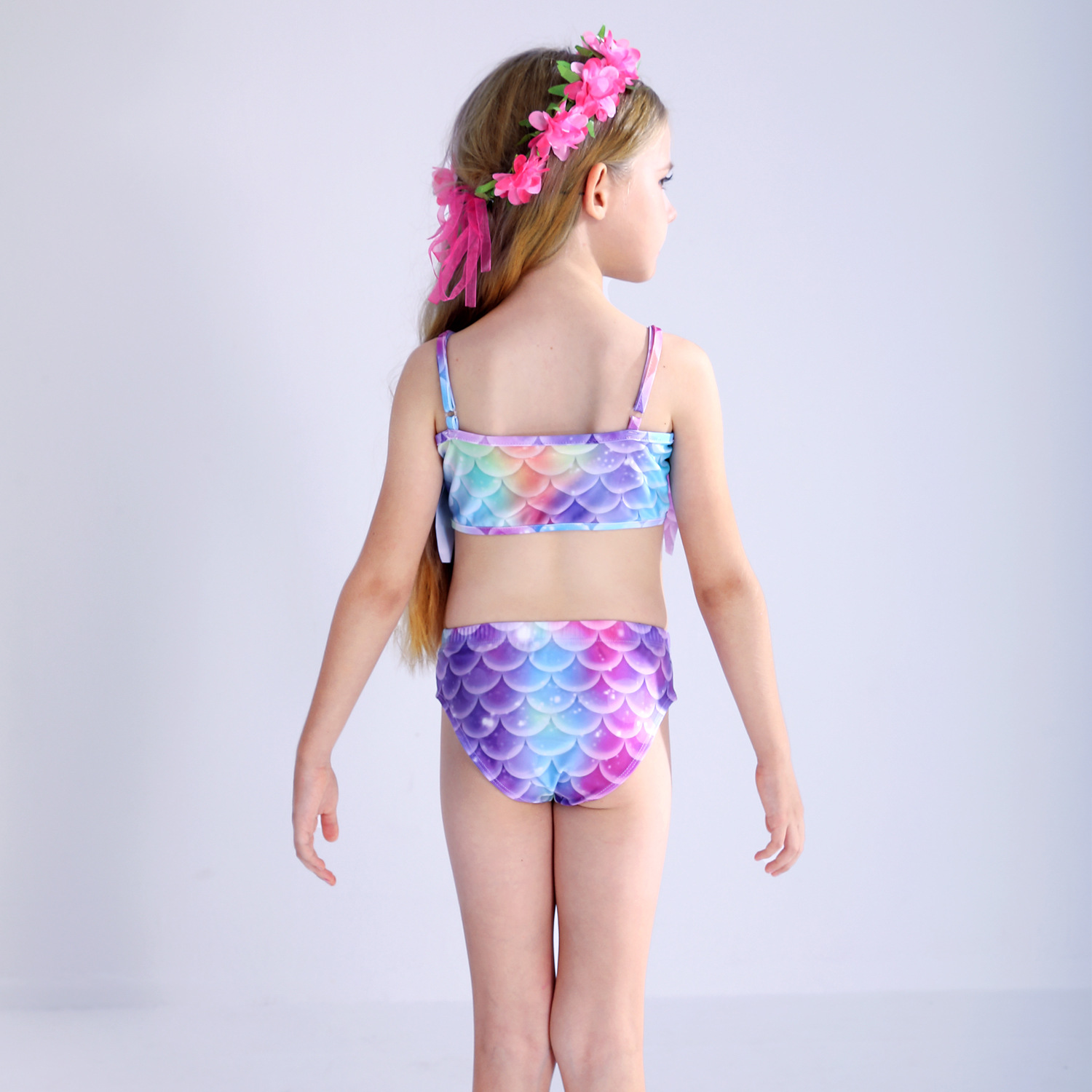 Детский купальник русалки для девочек, купальник с хвостом русалки, комплект из трех предметов, бикини принцессы для больших, средних и маленьких девочек