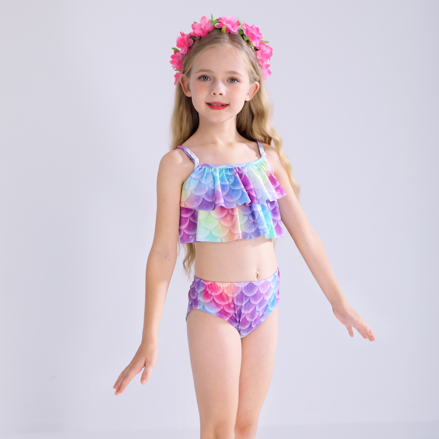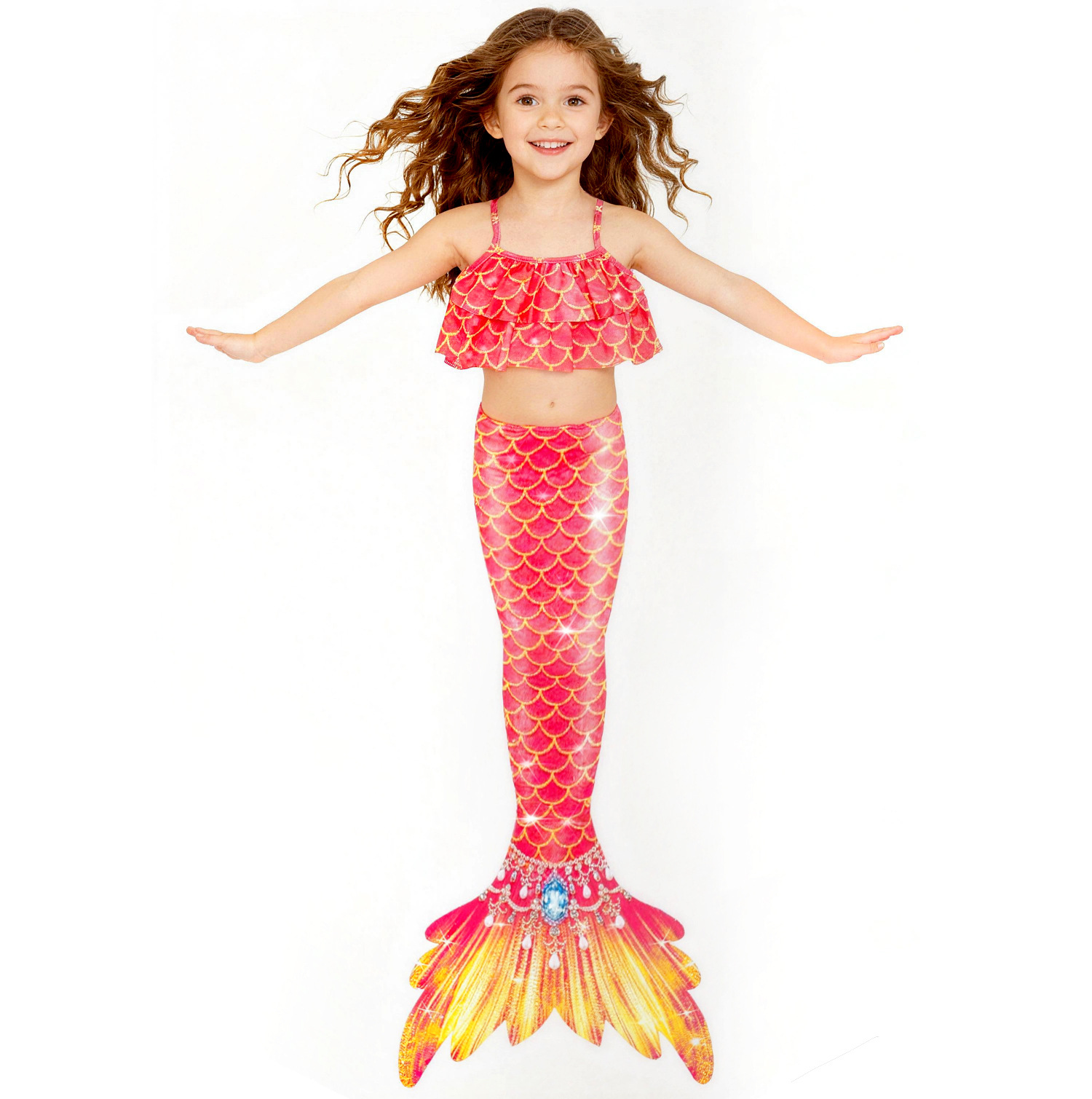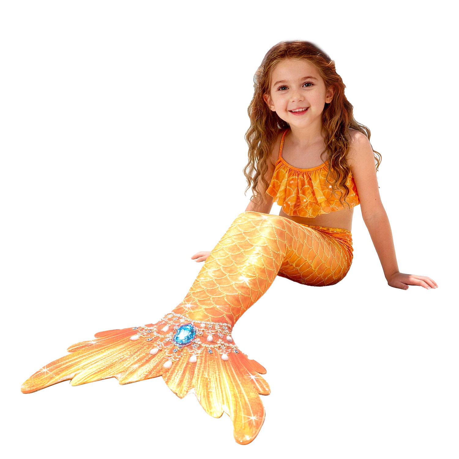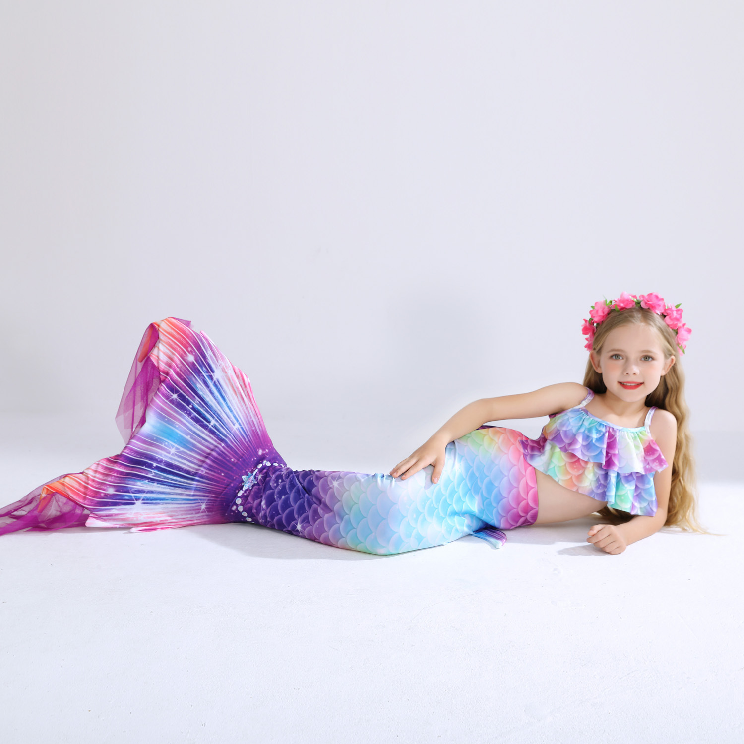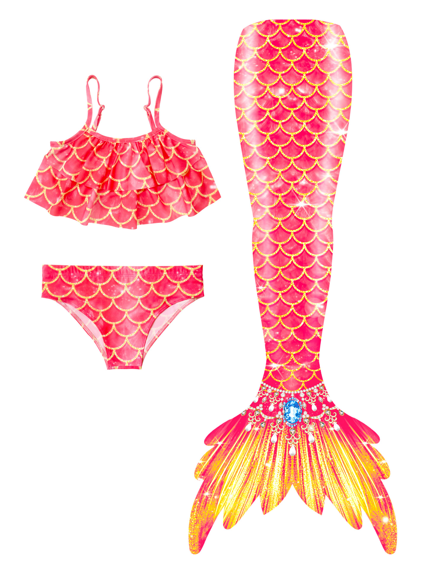 Детский купальник русалки для девочек, купальник с хвостом русалки, комплект из трех предметов, бикини принцессы для больших, средних и маленьких девочек