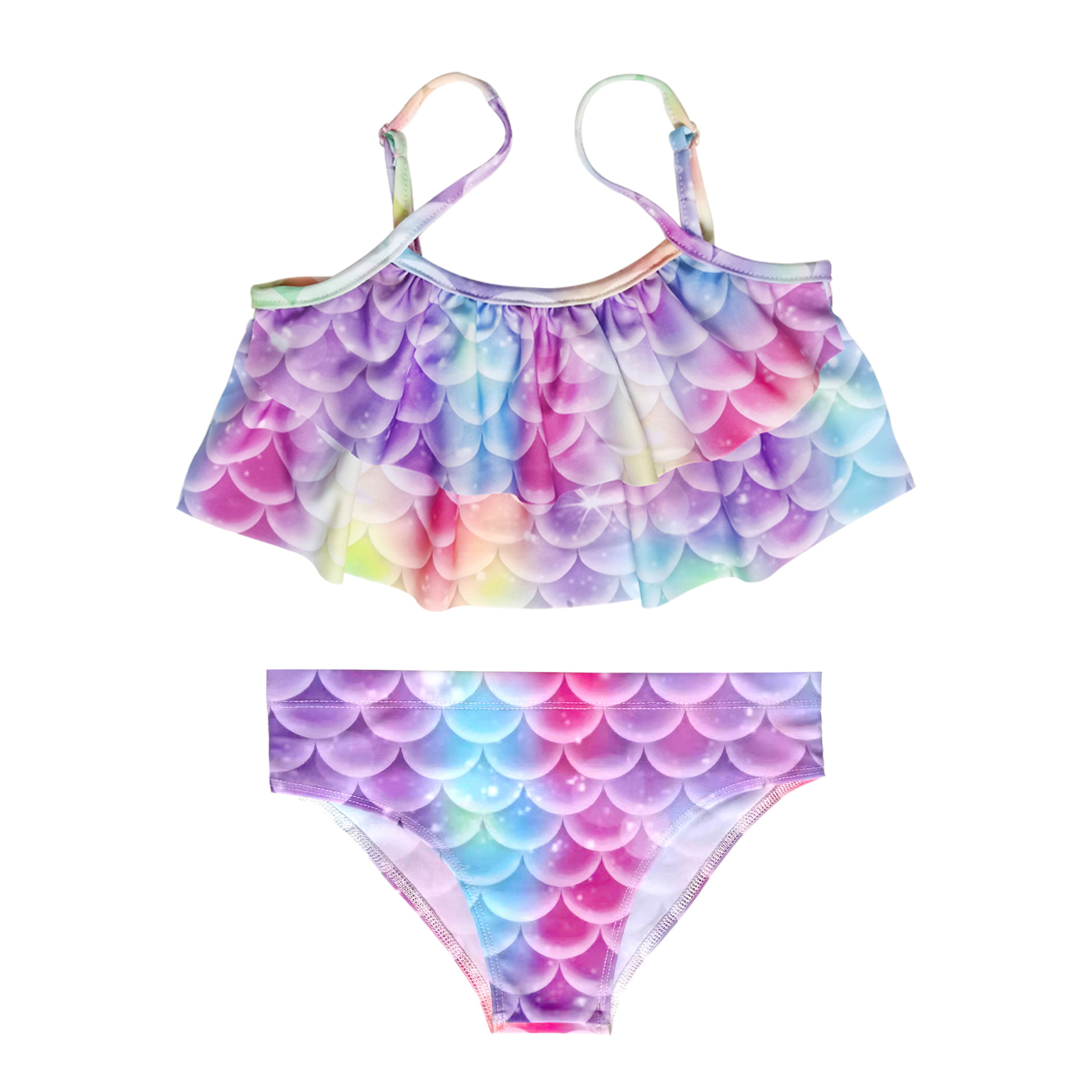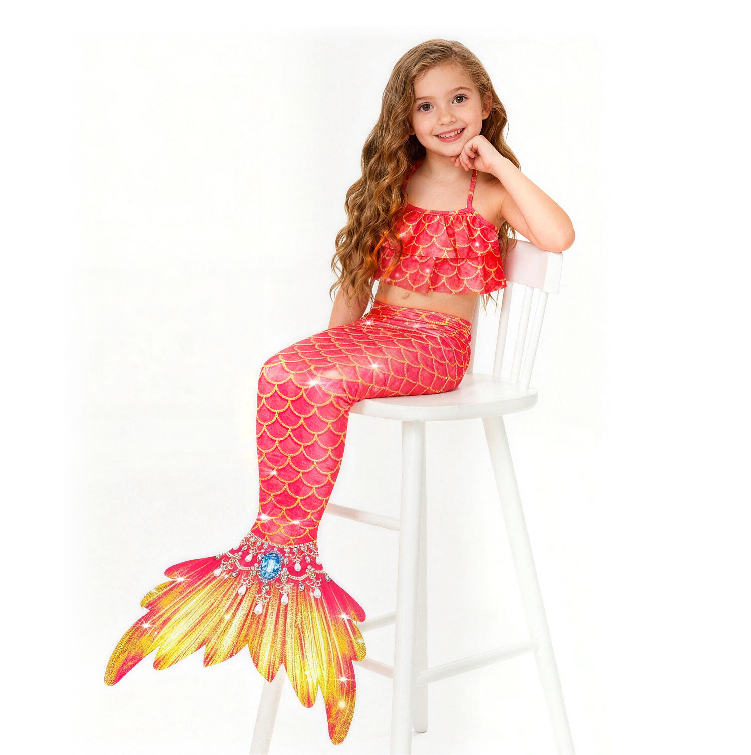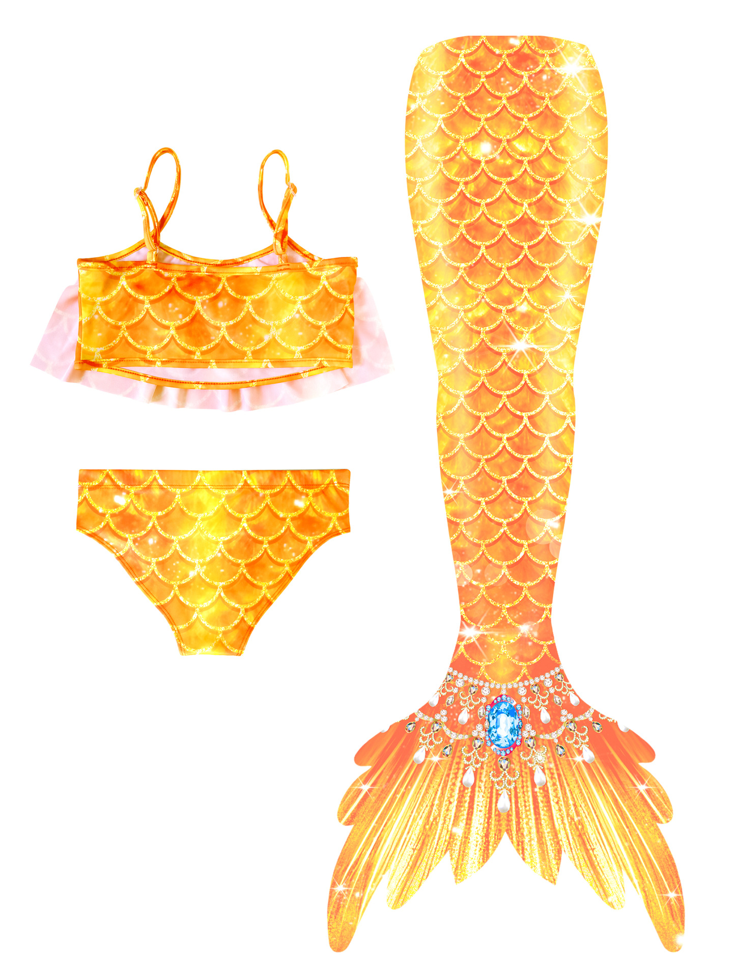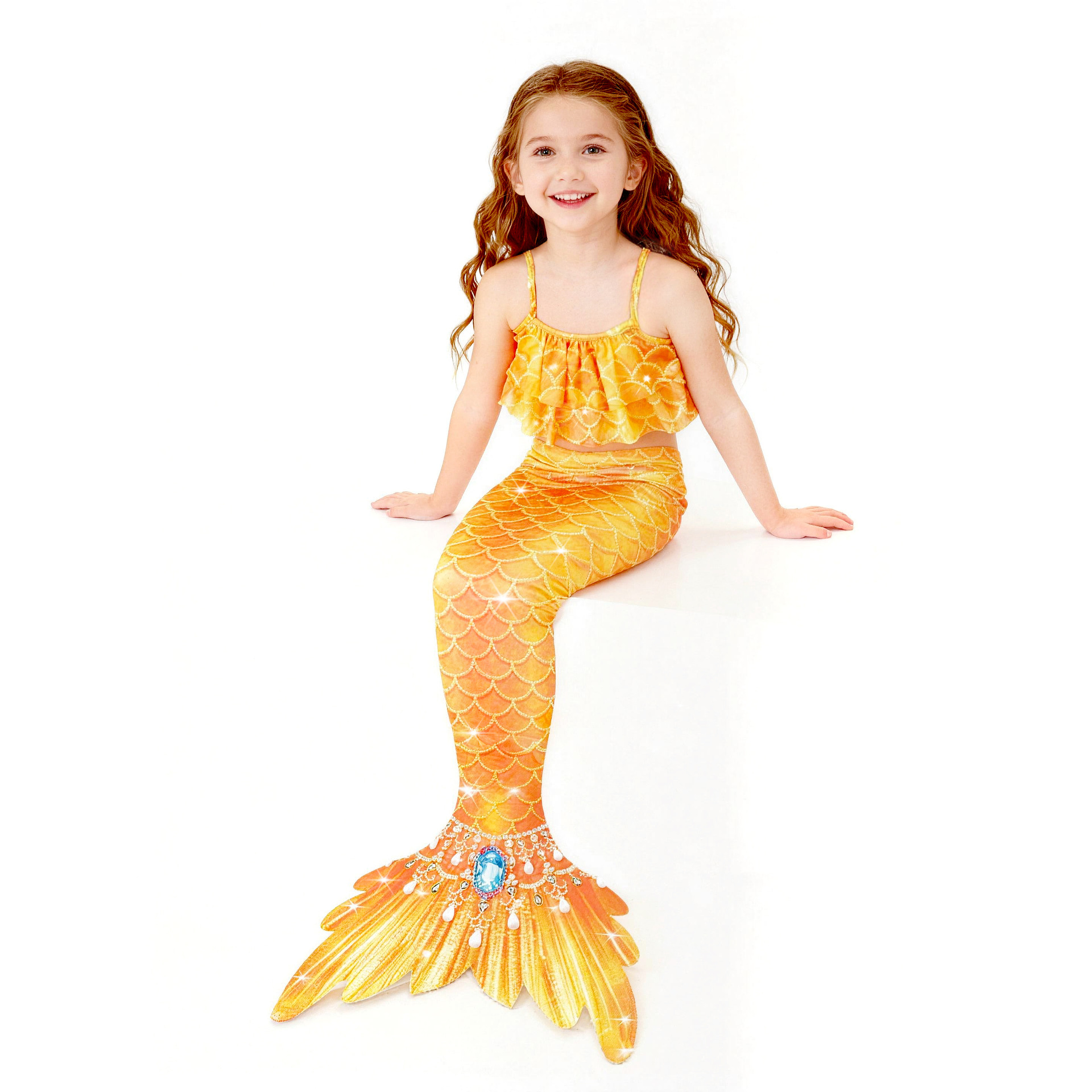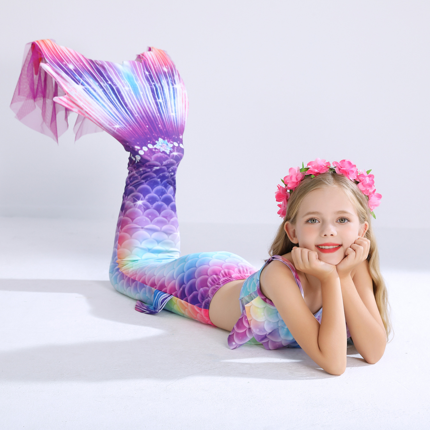 Детский купальник русалки для девочек, купальник с хвостом русалки, комплект из трех предметов, бикини принцессы для больших, средних и маленьких девочек