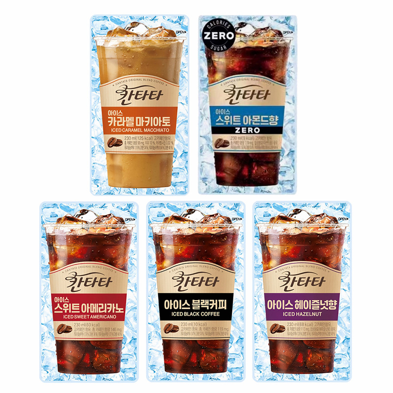 Черный кофе со льдом 230мл; Кофе со вкусом ледяного ореха 230мл; Ледяной сладкий кофе 230мл; Кофе со вкусом ледяной ванили 230мл.; Ледяной миндальный кофе 230мл; Ледяной карамельный маккиатофе 230мл
