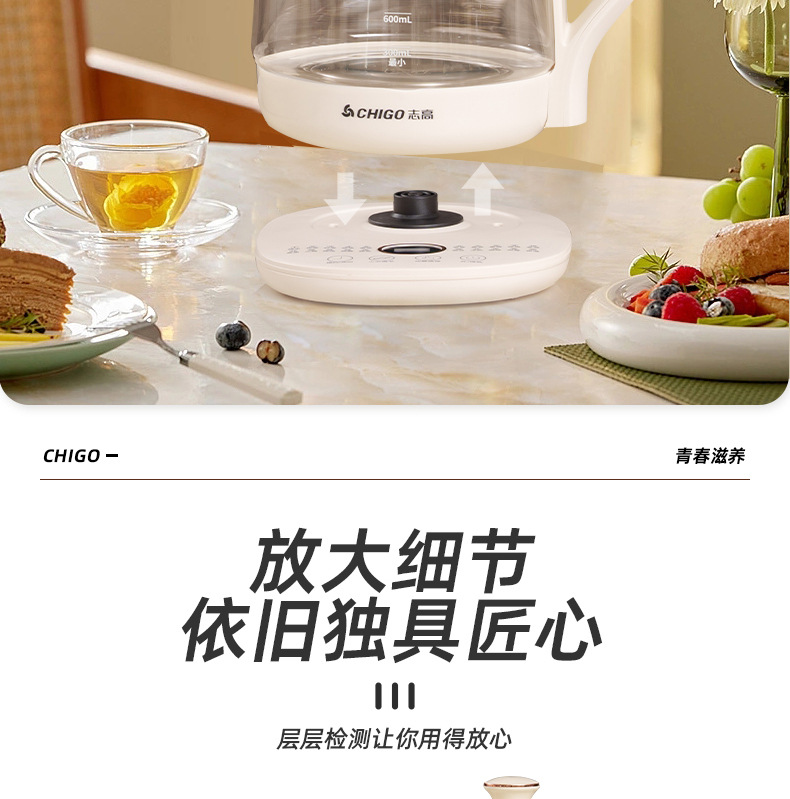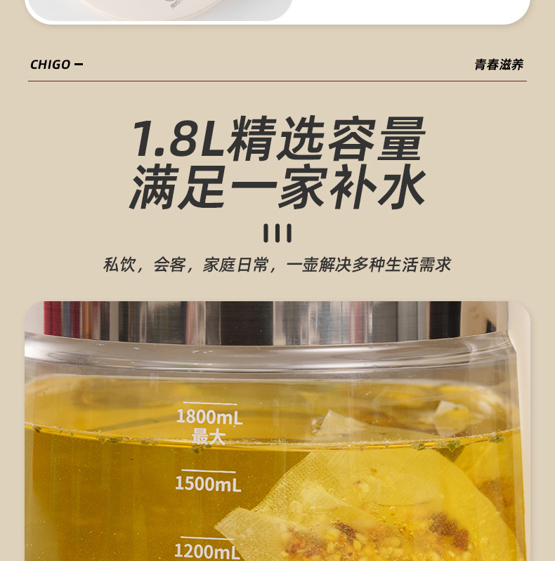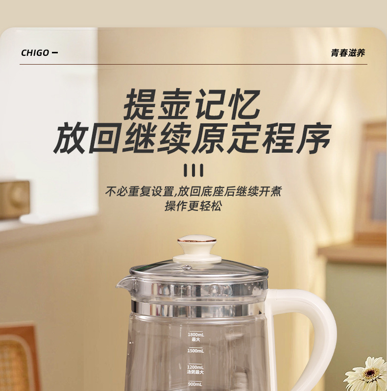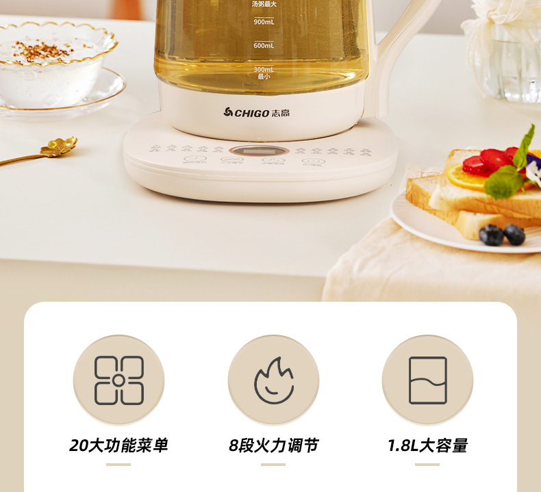 Чашка для здоровья Chigo для приготовления чая, бытовой многофункциональный интеллектуальный чайник с постоянной температурой 1,8 л, полностью автоматический горшок для отбора