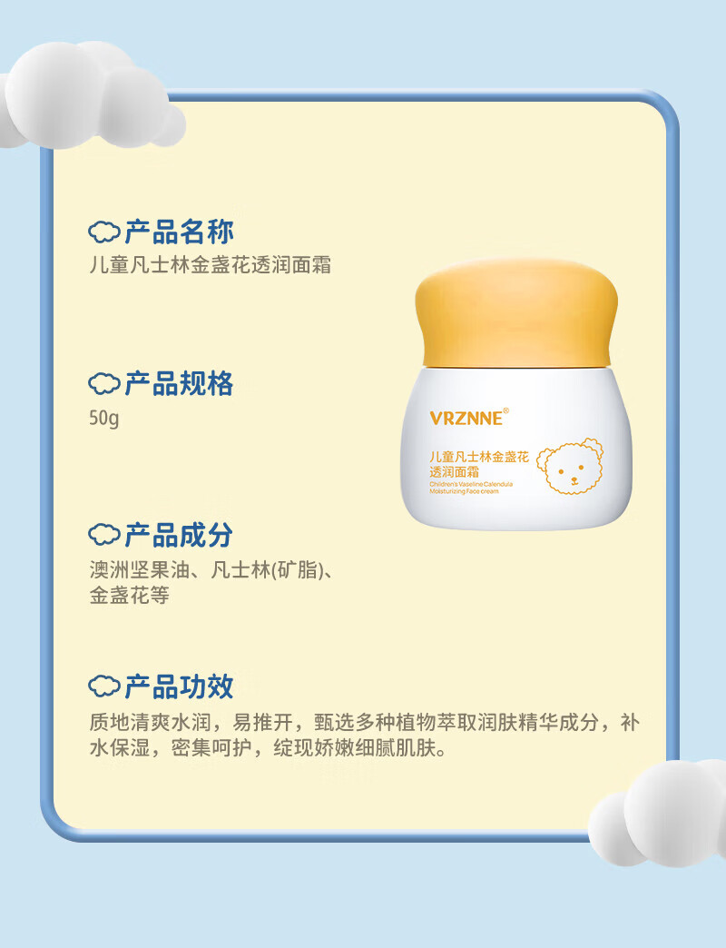 Детский увлажняющий крем с календулой и вазелином VRZNNE; VRZNNEkids Увлажняющий крем с вазелином и авокадо; Детский крем для рук с вазелином и авокадо VRZNNE; VRZNNE Крем для лица с маслом камелии и вазелином для младенцев и малышей; VRZNNE Детский и младенческий лосьон с вазелином и маслом камелии для увлажнения кожи; VRZNNE Детский крем для рук с вазелином и ромашкой