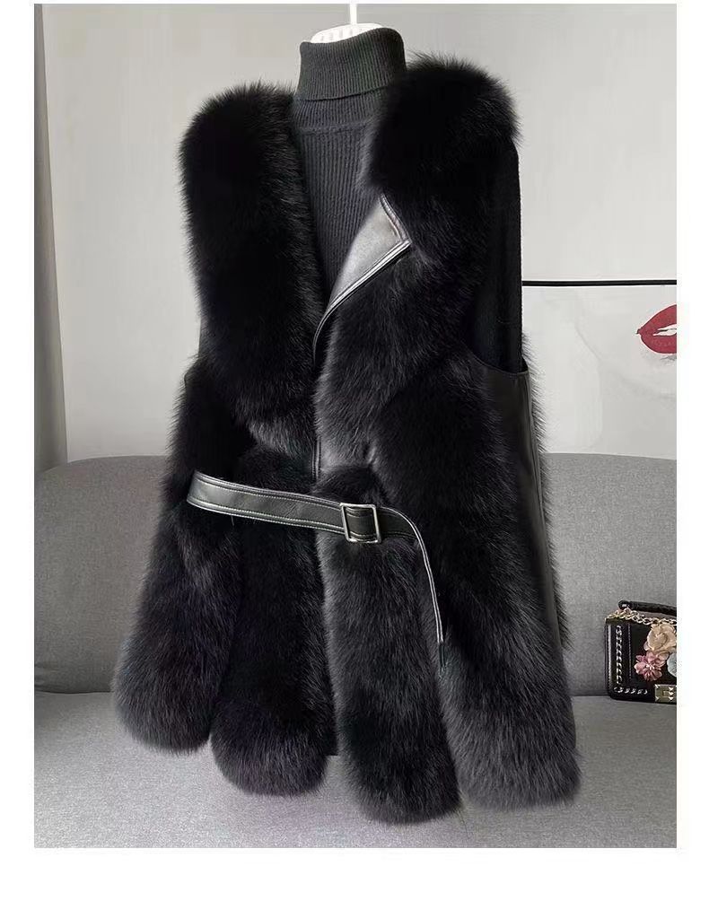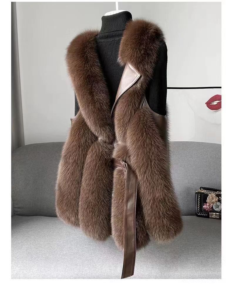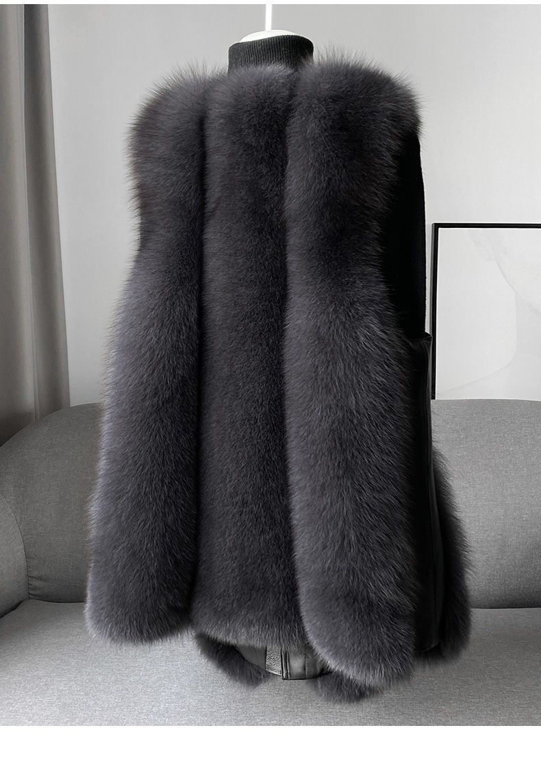 Жилет из искусственного меха 2024, стильная зимняя верхняя одежда, утолщенный жилет из искусственного меха лисы, модный молодежный стиль.