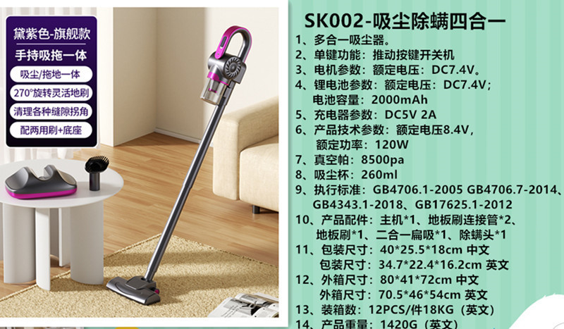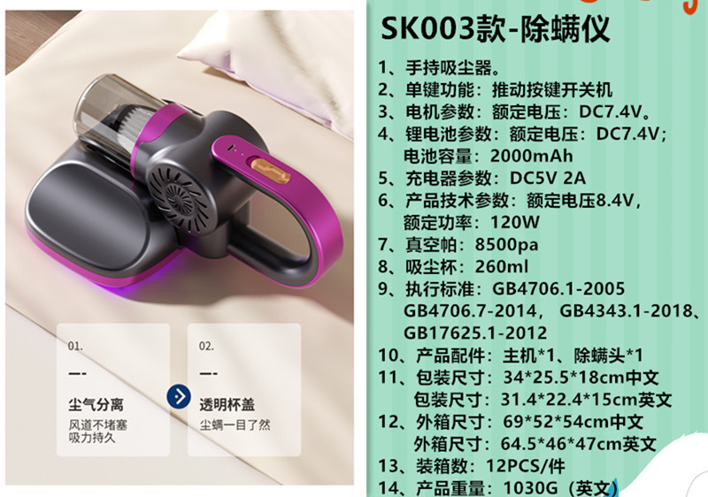 SK003-антиклещи-белый; SK003 модель-антиклещи -- фиолетовый; SK004 модель-пылесос -- белый; SK004 модель-Пылесос -- фиолетовый; SK002 модель-пылесос и клещей четыре в одном -- белый; SK002-Пылесос и клещей четыре в одном -- фиолетовый