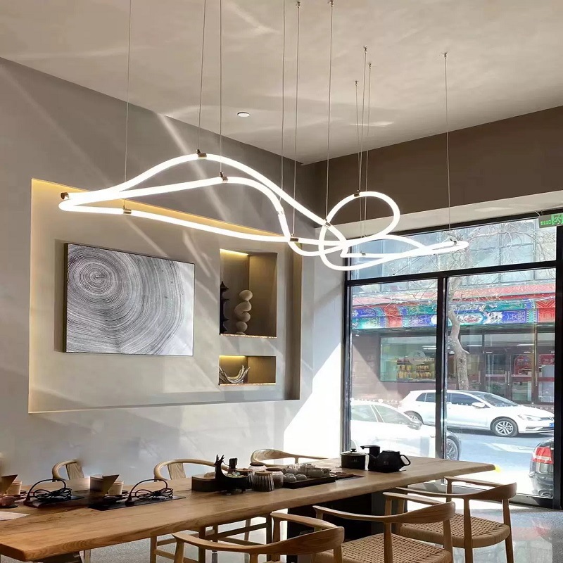Минималистичная барная стойка для гостиной, длинный обеденный стол, DIY силиконовый подвесной светильник, дизайнерский креативный светильник в виде музыкальной ноты, изогнутая линия света
