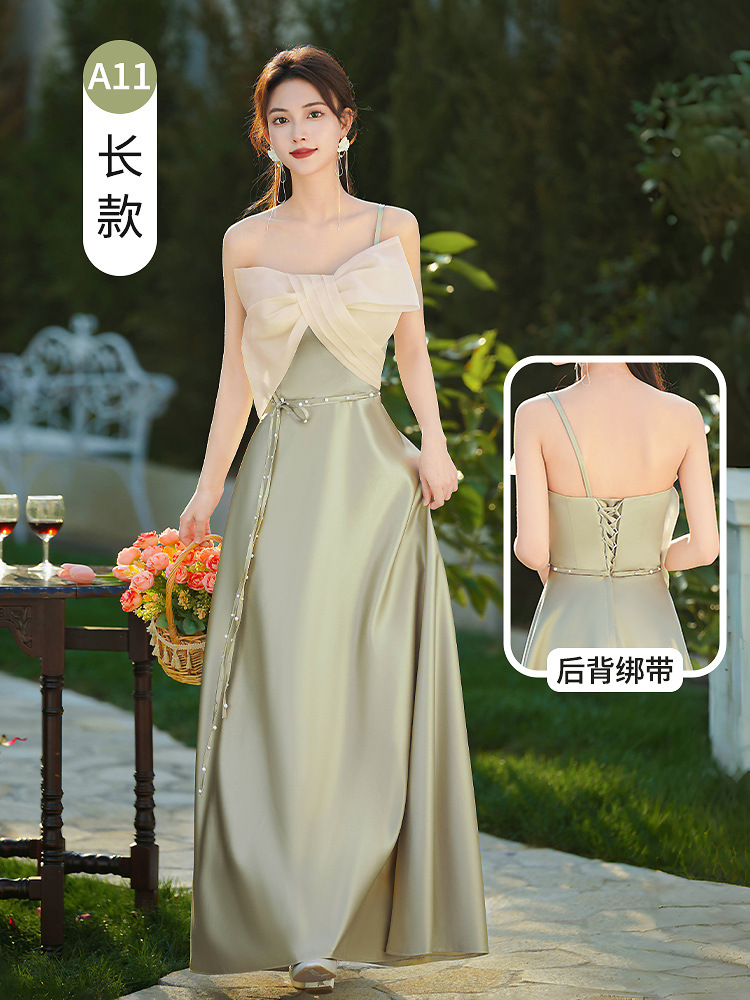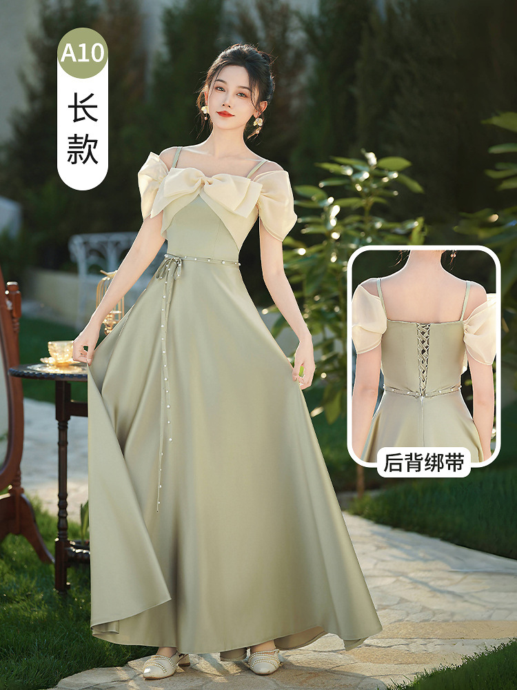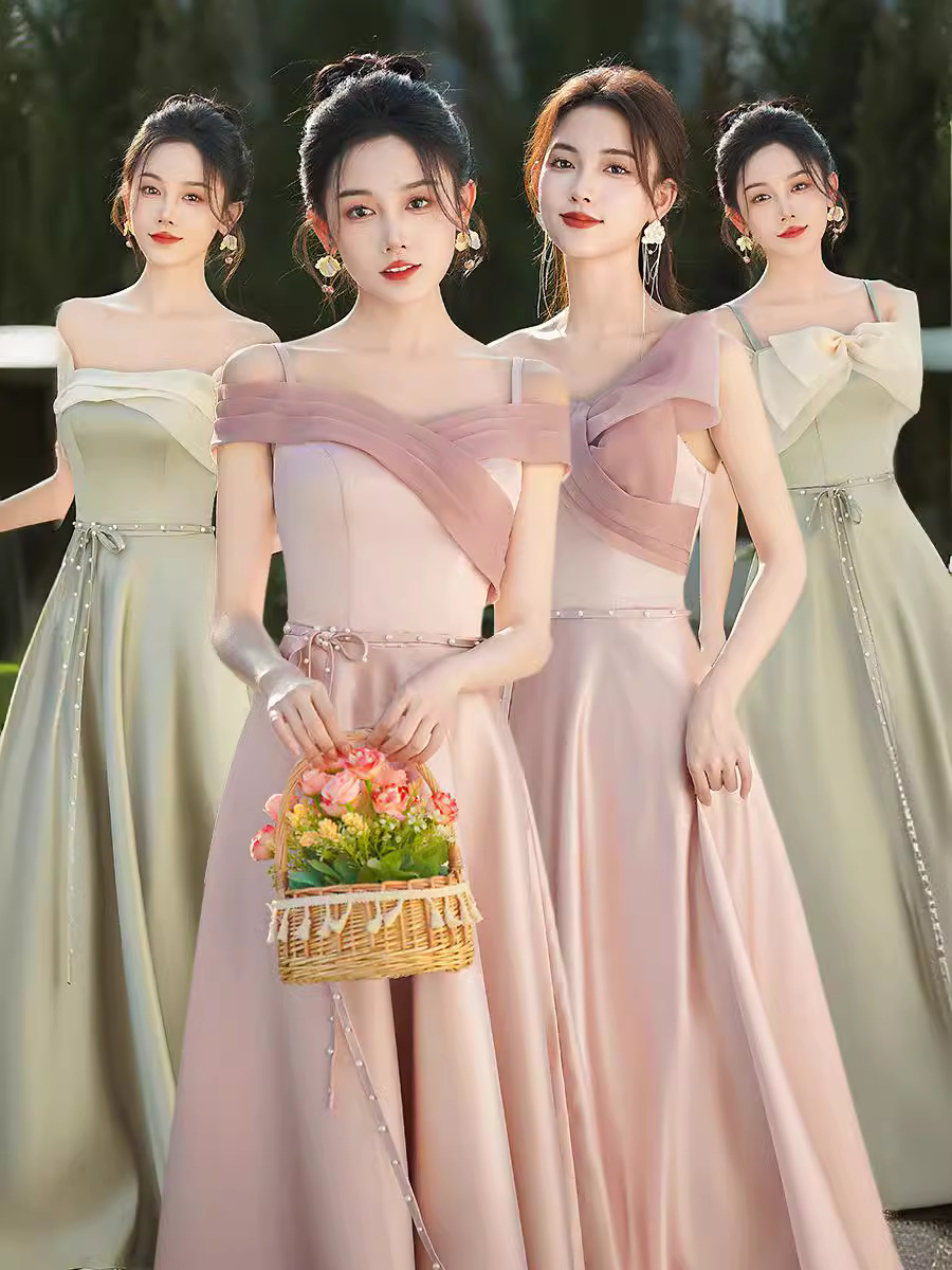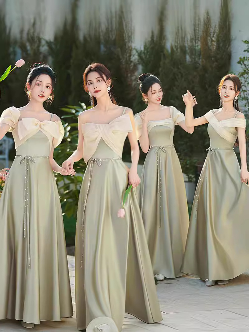 Атласное платье для подружек невесты 2025, новый стиль, вечернее платье для сестринской группы, зеленое, больших размеров, свадебное, эксклюзивное, элегантное, в стиле феи.