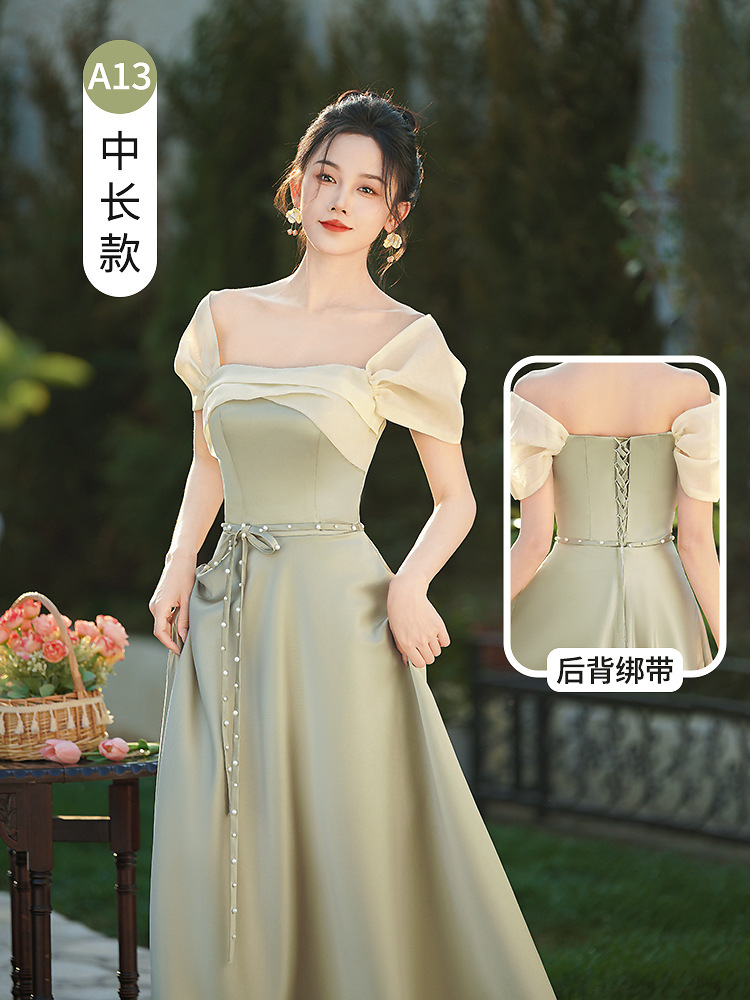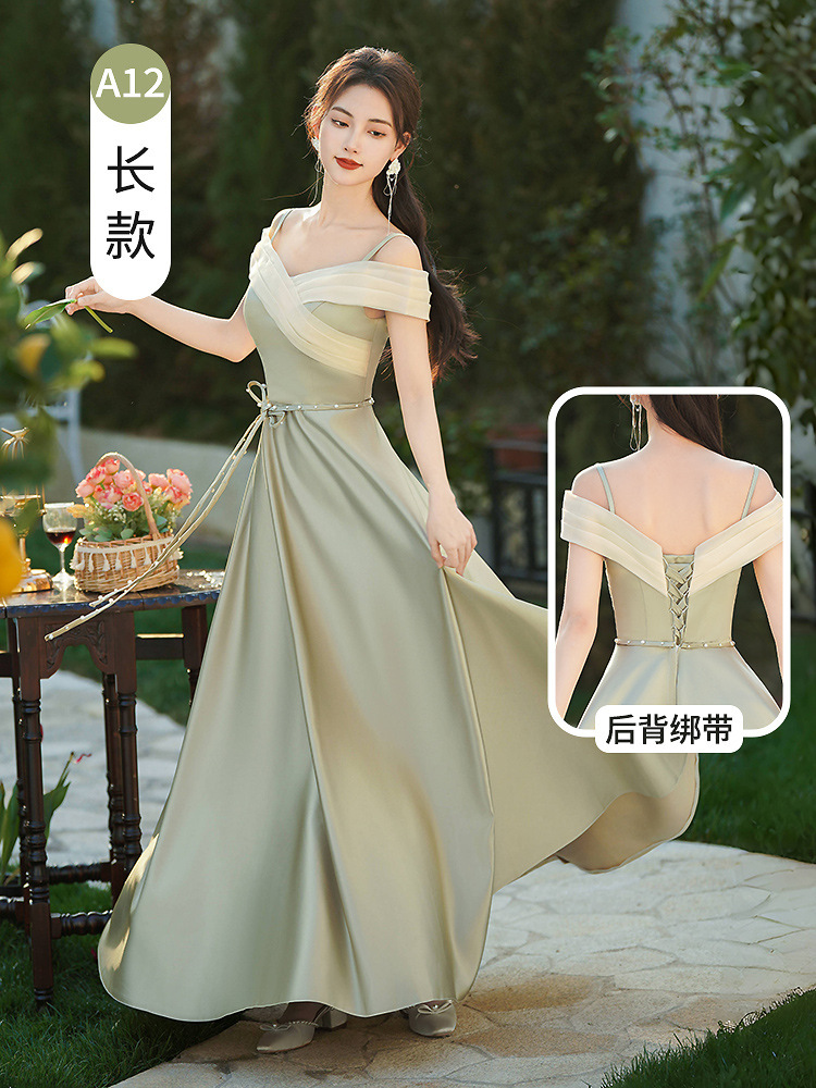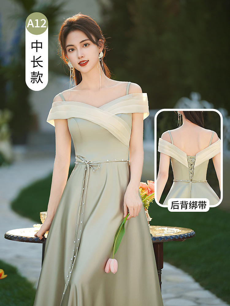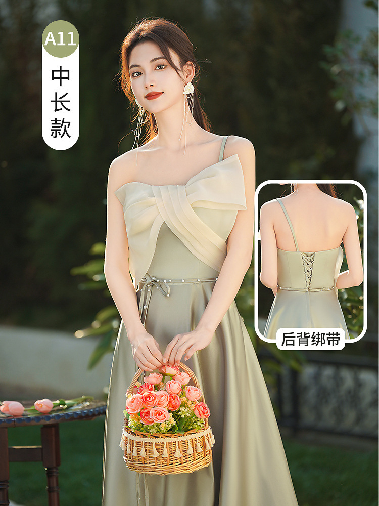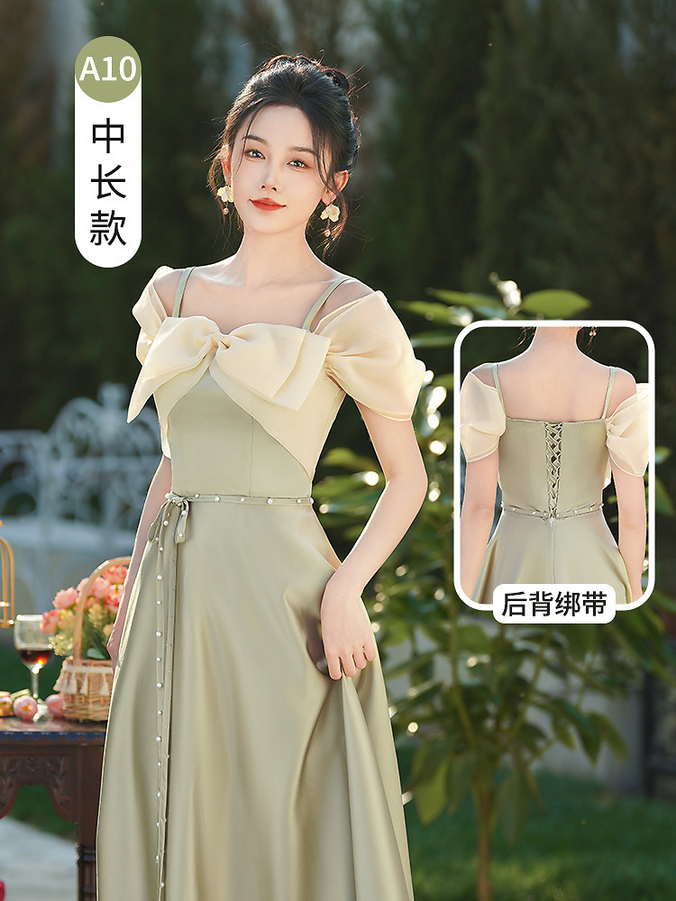 Атласное платье для подружек невесты 2025, новый стиль, вечернее платье для сестринской группы, зеленое, больших размеров, свадебное, эксклюзивное, элегантное, в стиле феи.