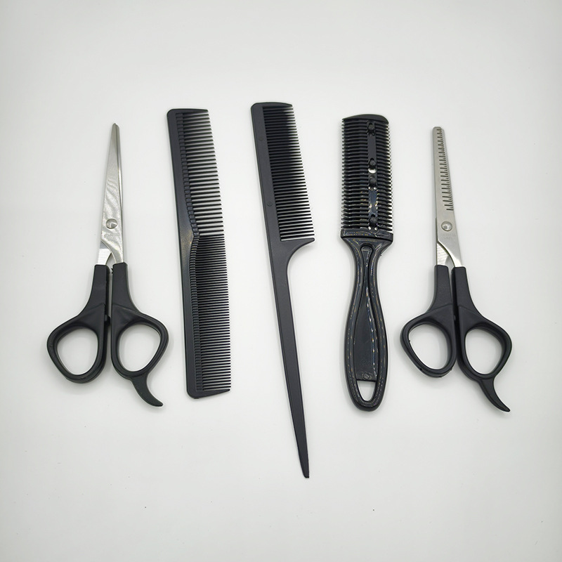 Плоские ножницы + стоматологические ножницы + бритье волос + расческа с заостренным хвостом + двусторонняя расческа, набор из 5 предметов в пакете OPP