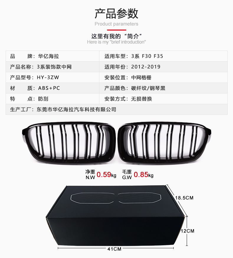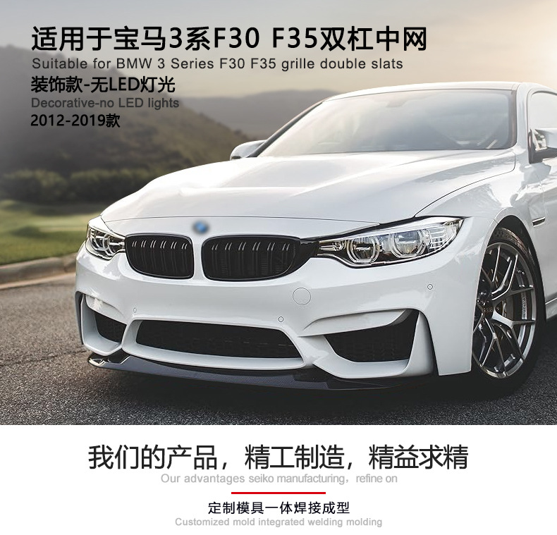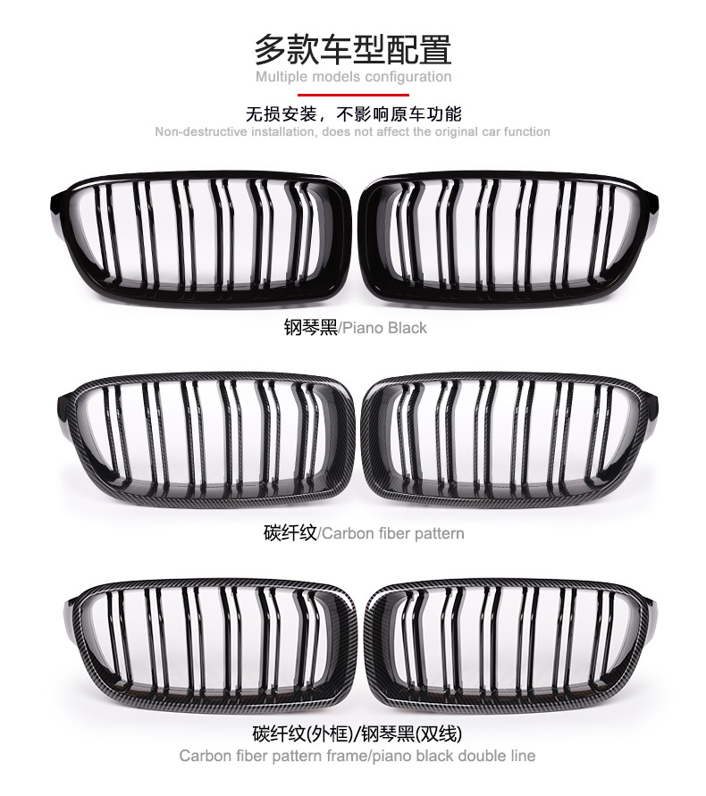 Подходит для BMW 3 серии ярко-черная сетка F30 China Net модифицированная ярко-черная 3-я серия двухпроводная сетка F35 с параллельными решетками