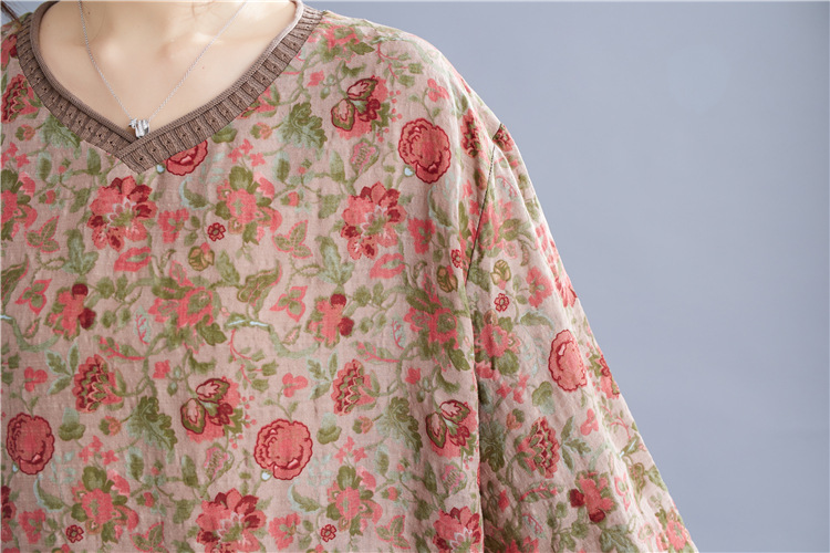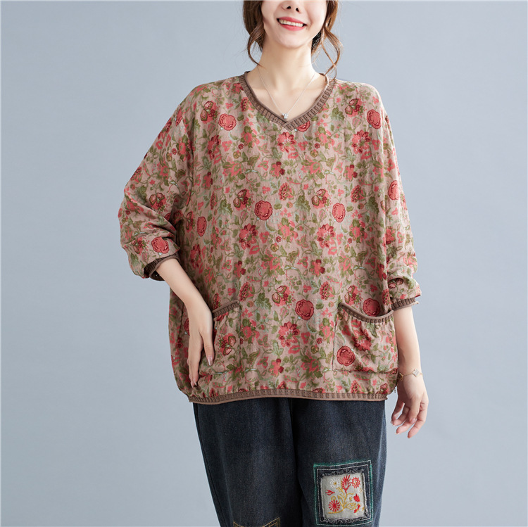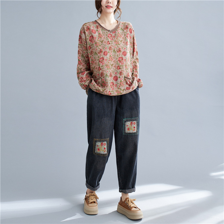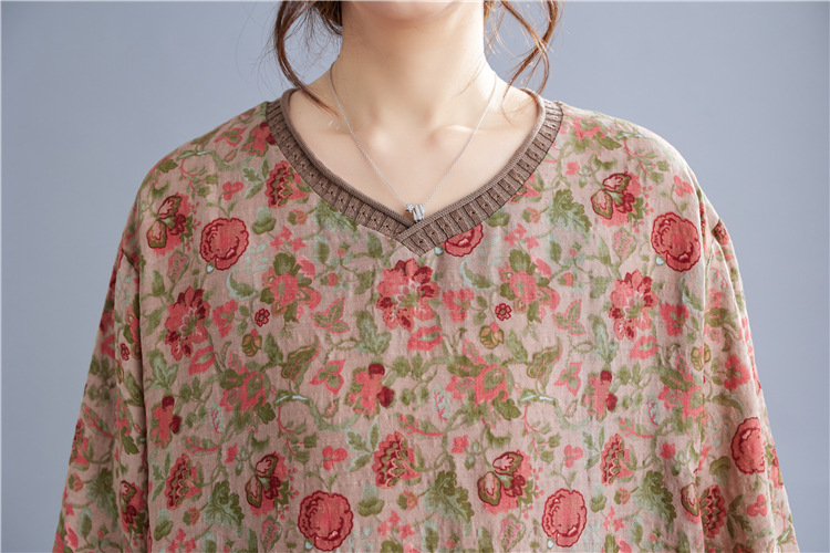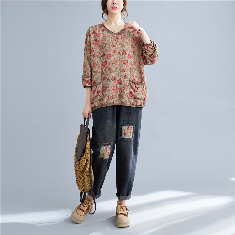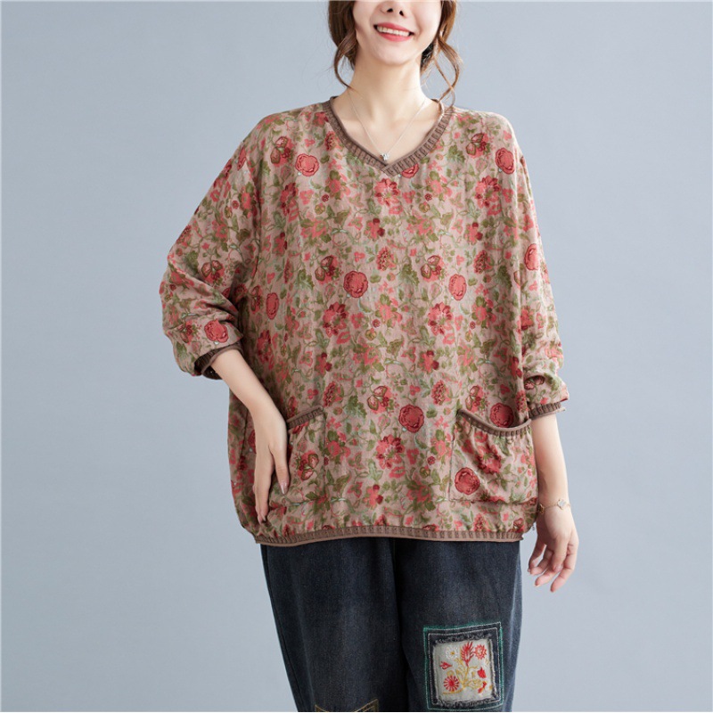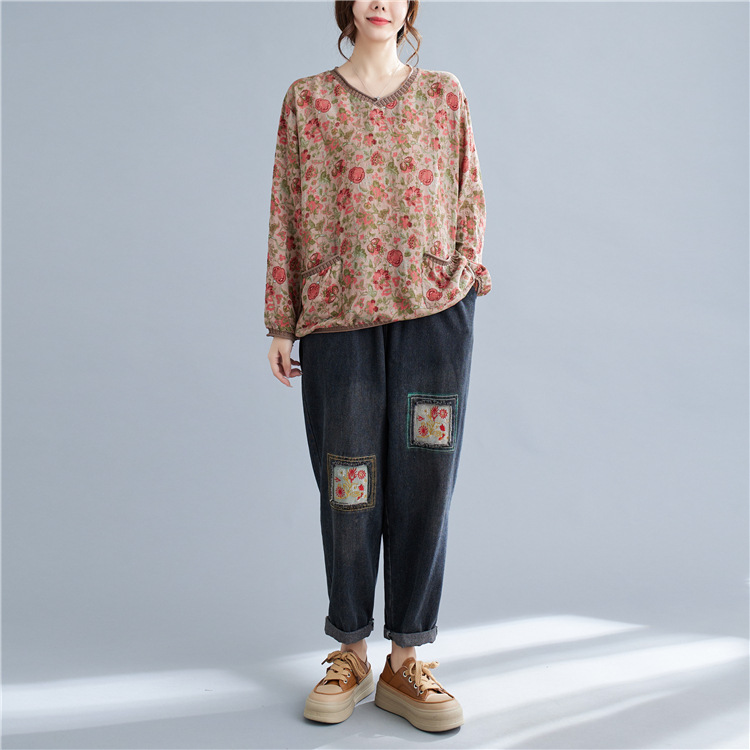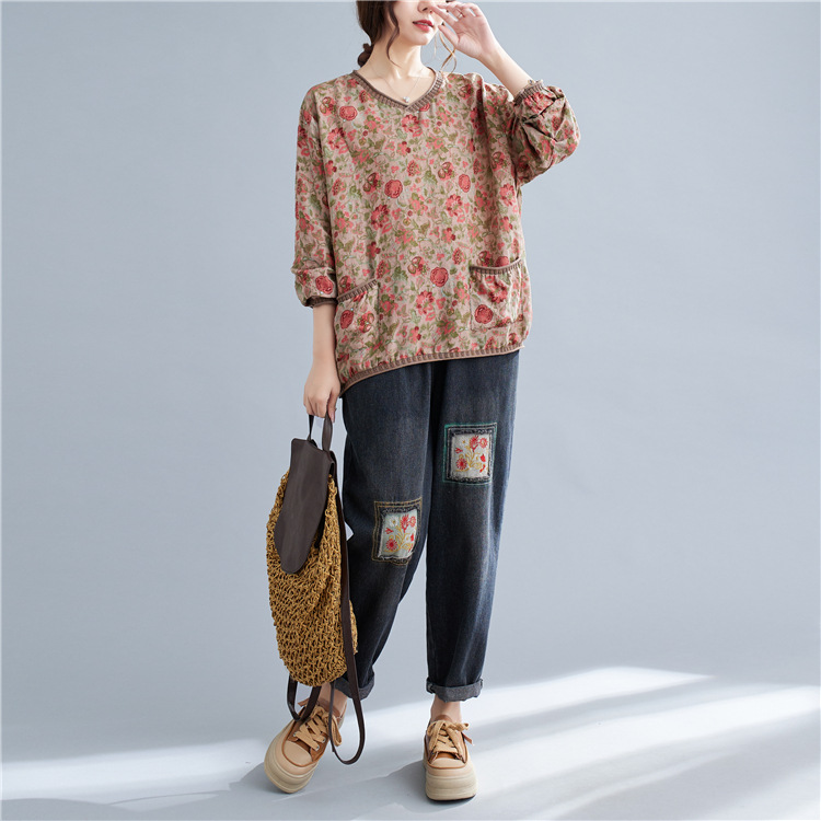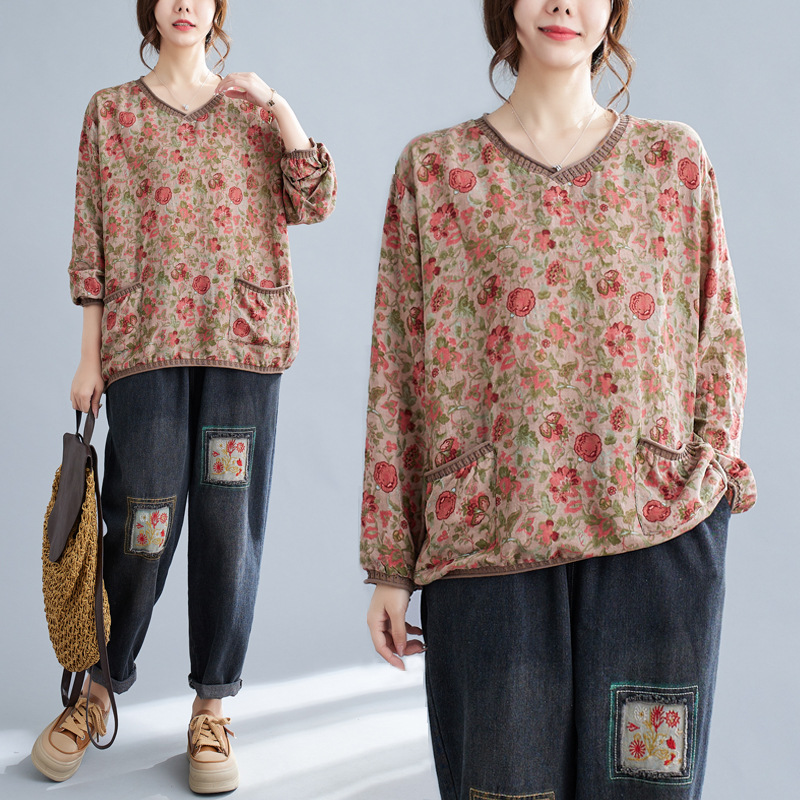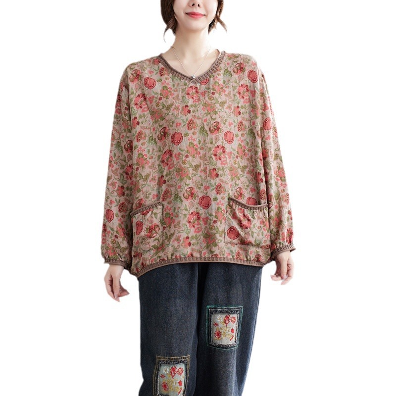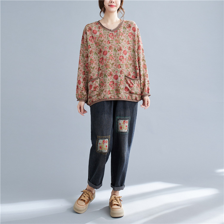 Весенний новый стиль, скрывает фигуру и создает эффект стройности, ретро-стиль из хлопка и льна, осенний, с длинными рукавами, свободный крой, большой размер, вязаный пуловер в стиле пэчворк.