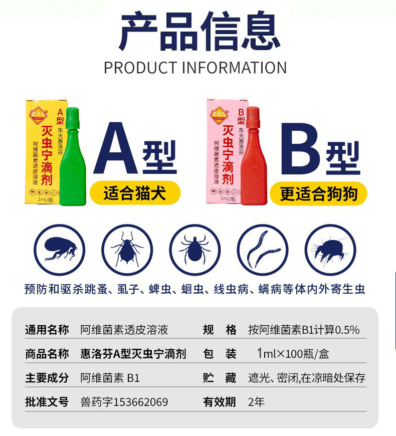 Huilofen Mite Ning Drops Type A Type B Внешний репеллент от насекомых для удаления вшей, уничтожения блох, клещей и клещей, доступен для дропшиппинга.