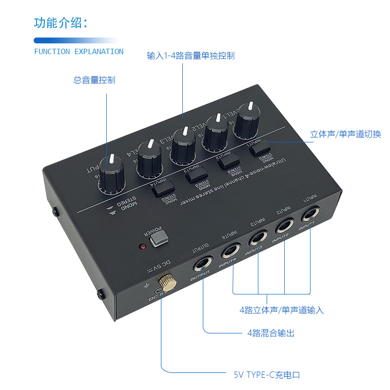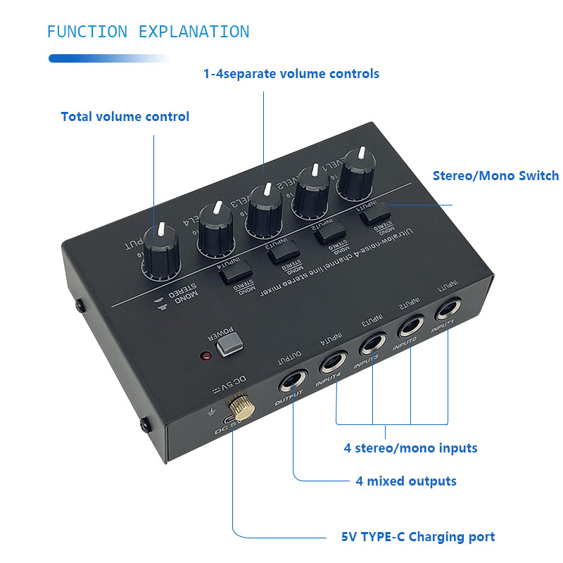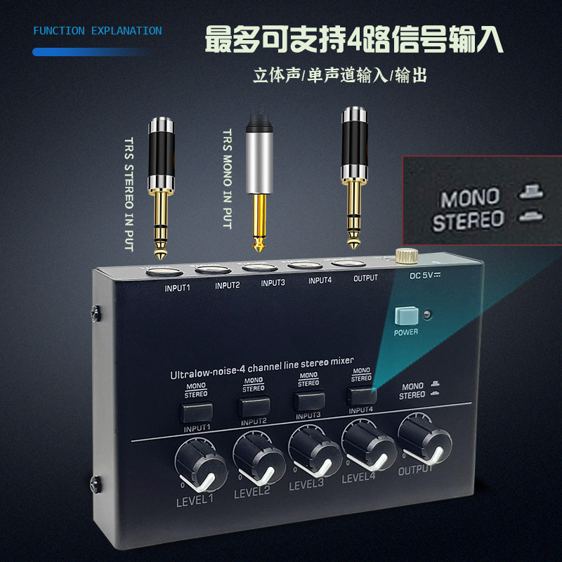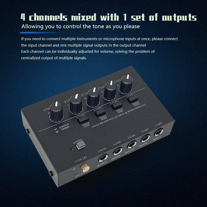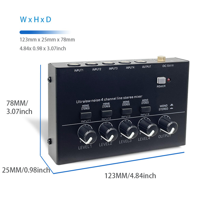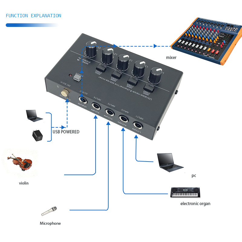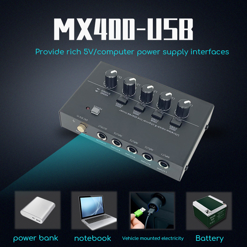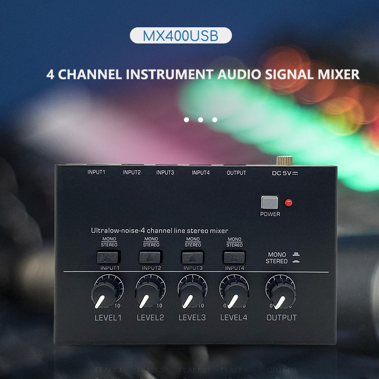 MX400USB 4-канальный аудио микшер Четырехканальный микшер сигнала 4 Chaner Mixer
