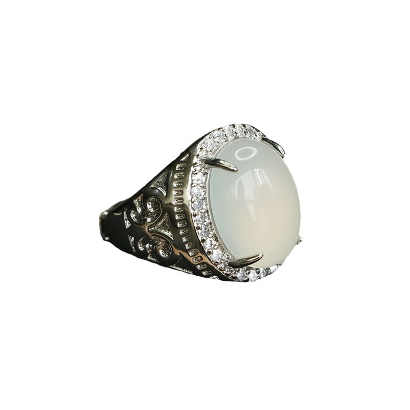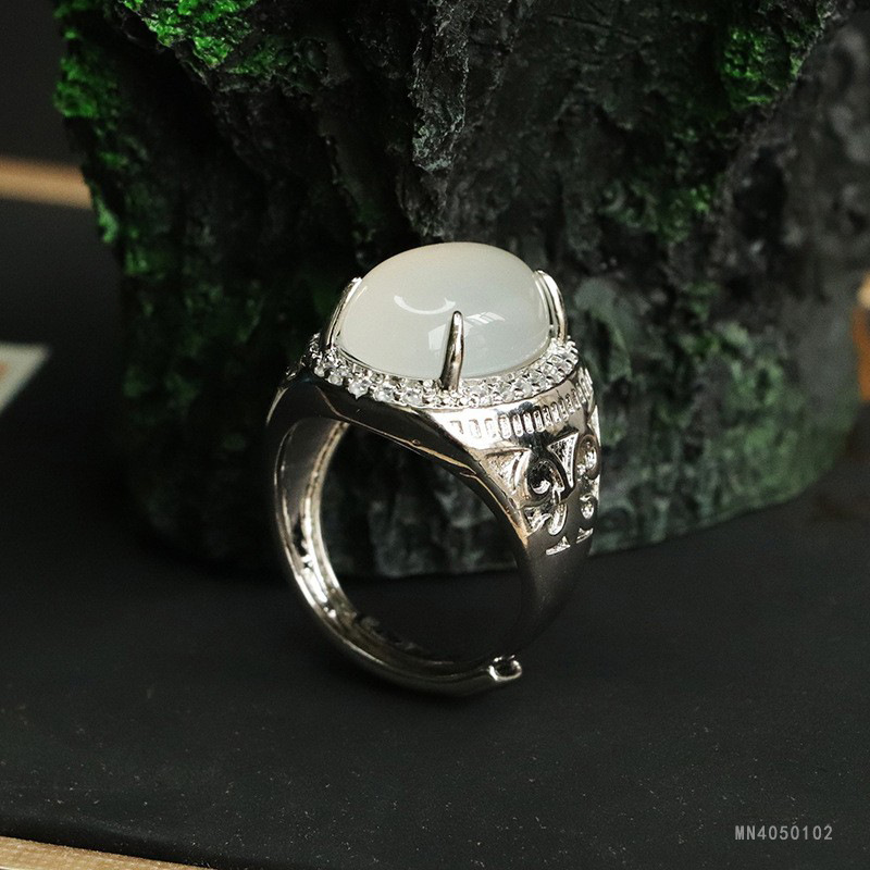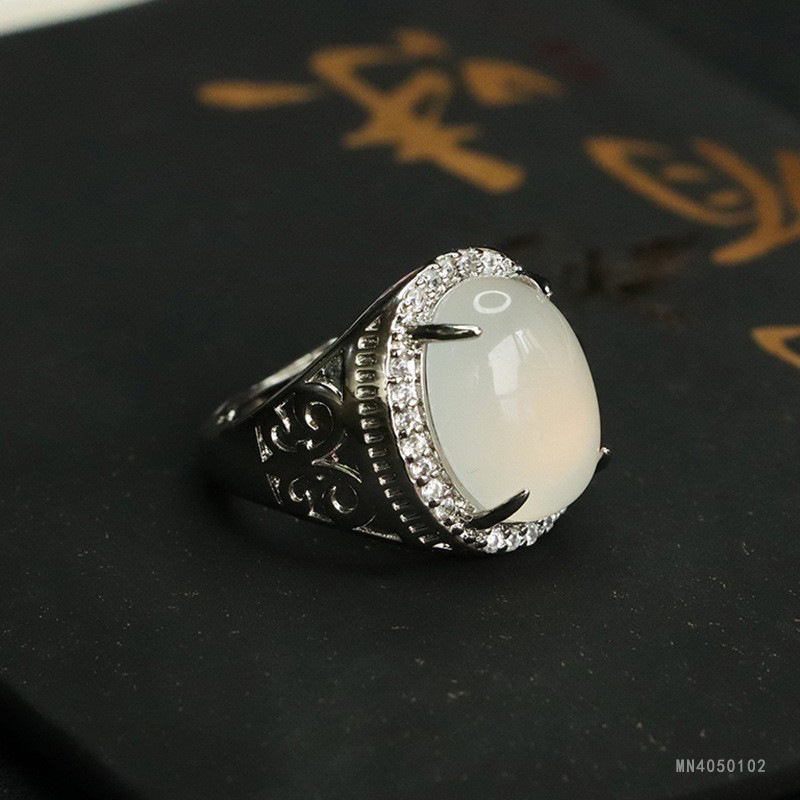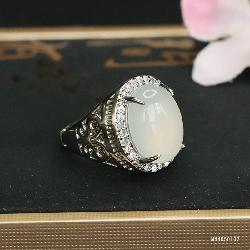 Военное кольцо из натурального белого лунного агата с белым халцедоном, ювелирные изделия, женская оптовая доставка с фабрики MN 4050102