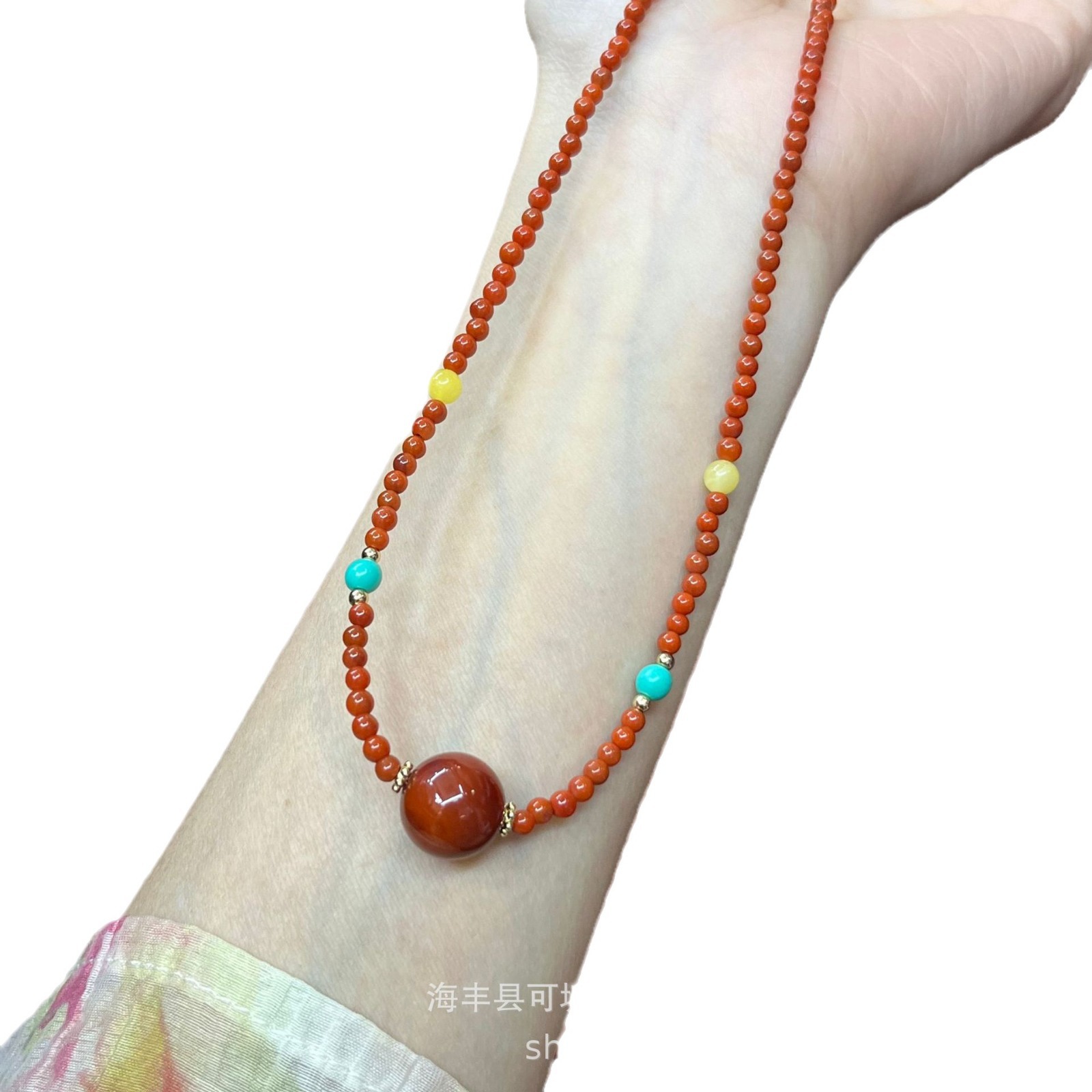 原创设计天然保山南红玛瑙项链单珠南红锁骨链夏天时尚直播福利款 批发量越大价格越低,可供直播间长期合作,欢迎来电私聊