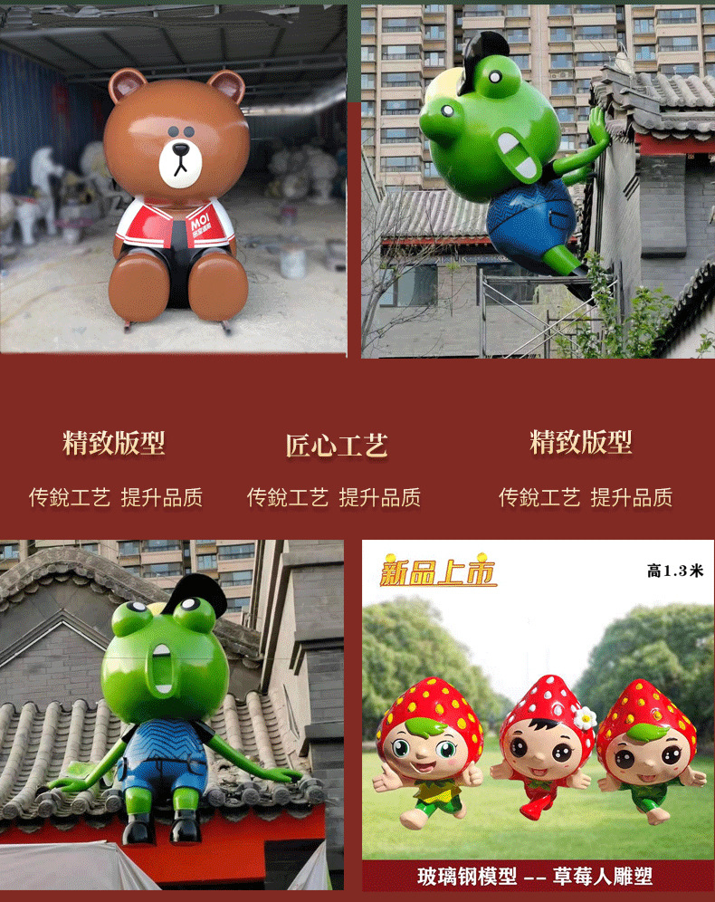 Индивидуальные стеклопластиковые скульптуры в стиле мультфильмов от производителя, изображения кукол-талисманов, крупномасштабные декоративные элементы на заказ.