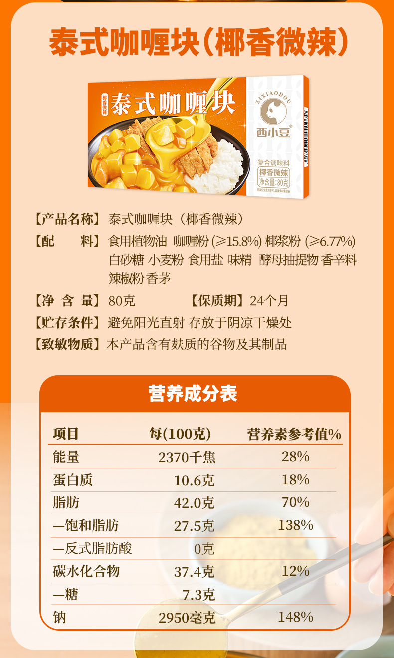 Съедобное растительное масло, порошок карри, порошок кокосового молока, белый сахар, пшеничная мука, пищевая соль, глутамат натрия и т.д.