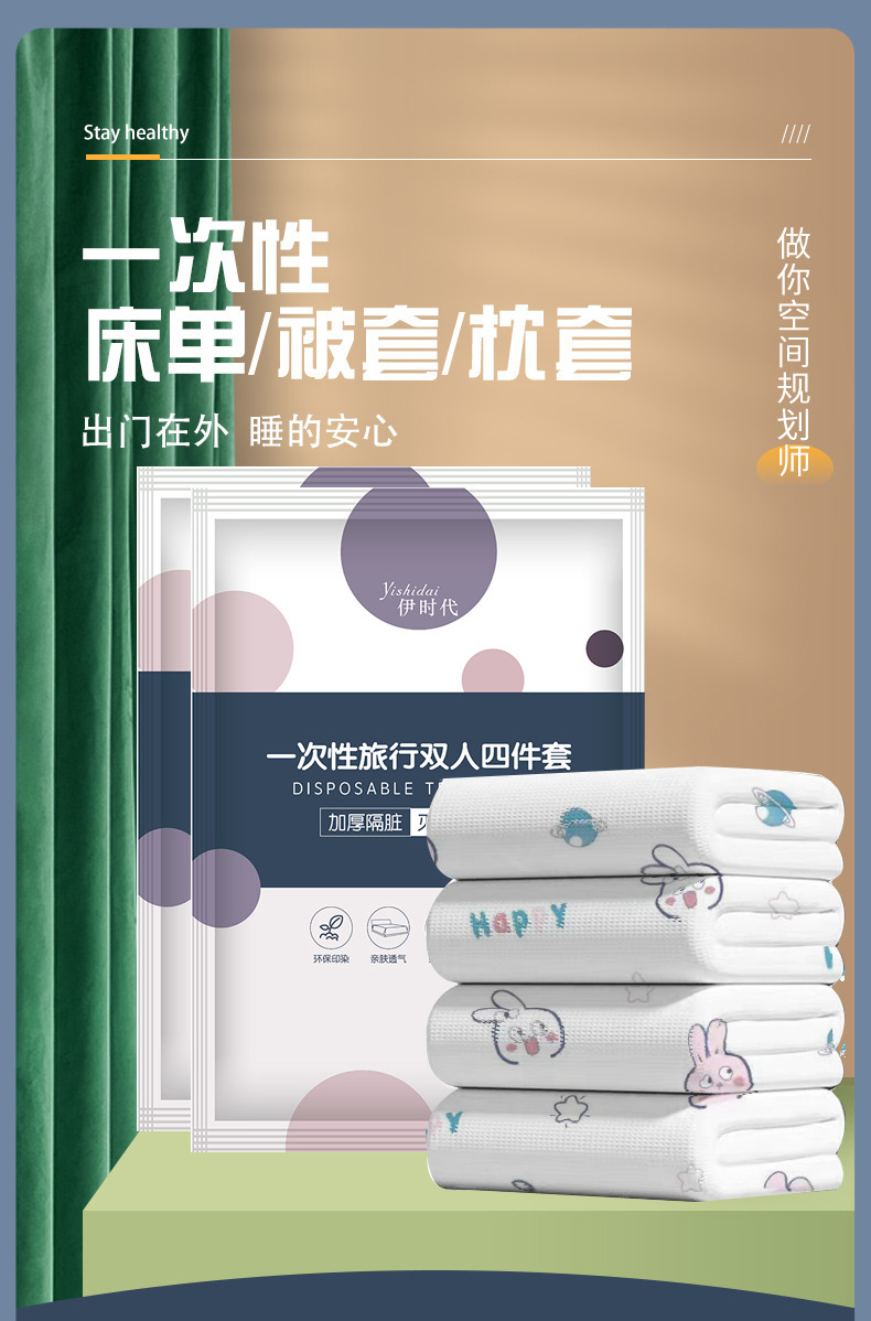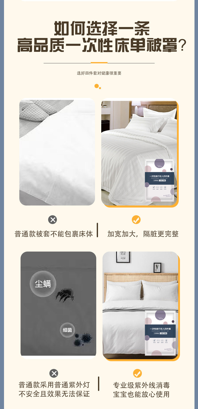Одноразовый комплект постельного белья из четырех предметов: простыня и пододеяльник, грязеотталкивающий и прочный пододеяльник для отелей и гостиниц, утолщенное постельное белье.