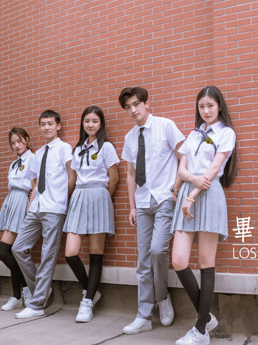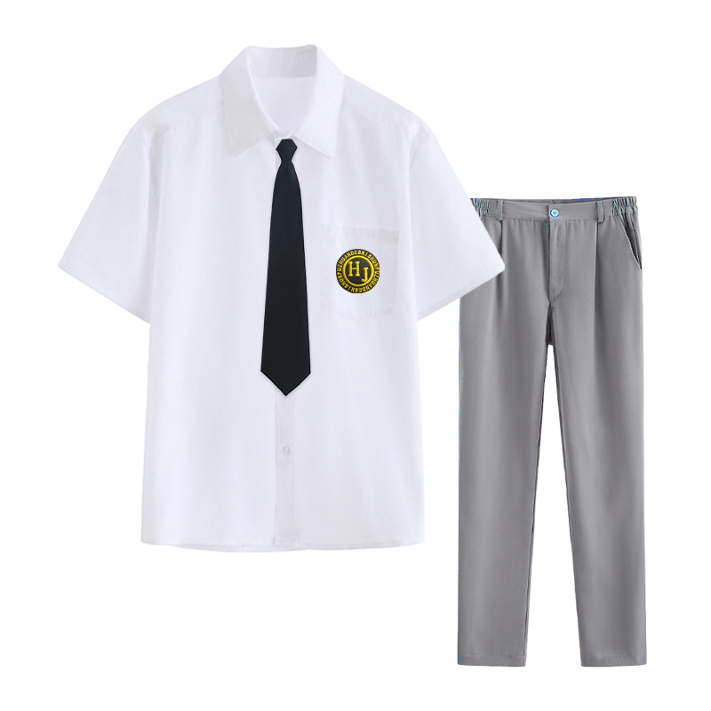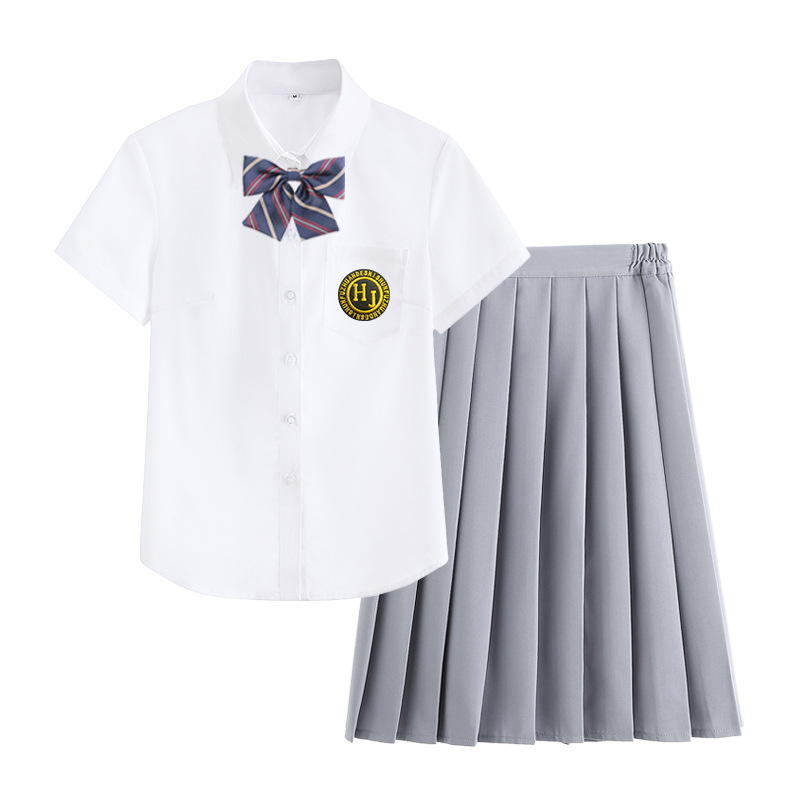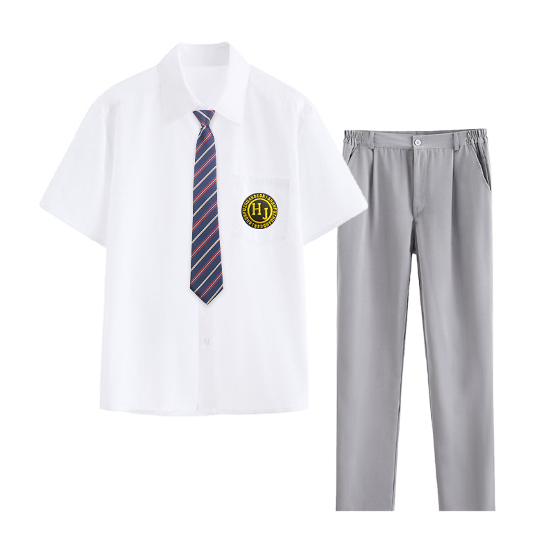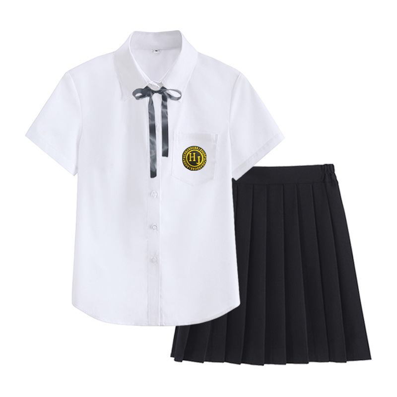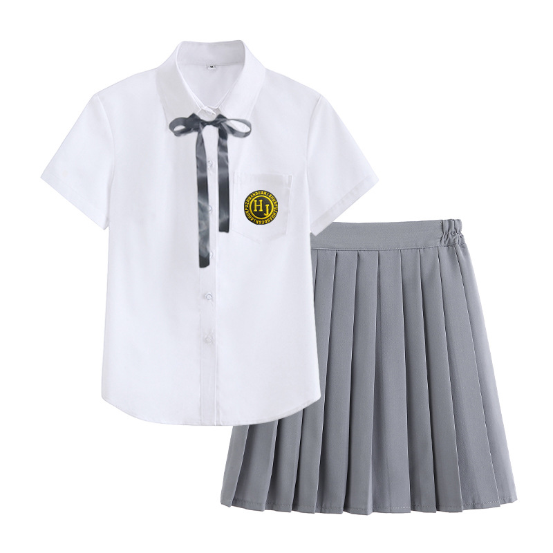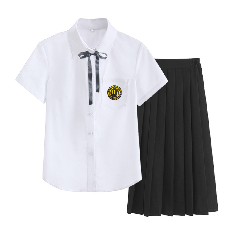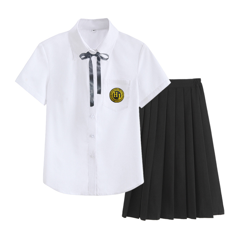 Рубашки для девочек; Рубашка для мальчиков; Знак для девочек рубашки стример; Значок галстука рубашки для мальчиков; Рубашка для девочек Серый короткая юбка стримеры значок; Рубашка для девочек серая юбка стримеры значок; Рубашка для мальчиков серый брюки галстук значок; Рубашка для девочек черная короткая юбка стримеры значок; Рубашка для девочек черная средняя юбка стример значок; Блузка для девочек черная длинная юбка стример значок; Рубашка для мальчиков черный брюки галстук значок; Рубашка для девочек серая короткая юбка-бабочка значок; Рубашка для девочек серая юбка-бабочка значок; Рубашка для мальчиков серые брюки в полоску галстук значок