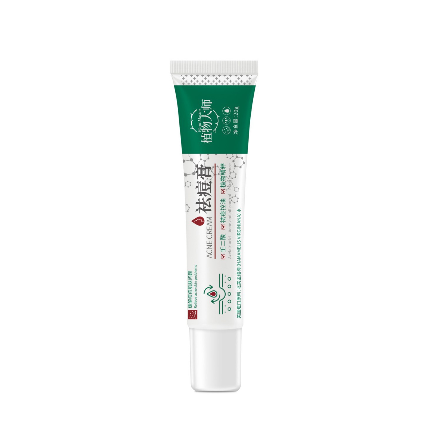 Крем от акне Plant Master 20г/тюбик, уменьшает следы и рубцы от акне, улучшает состояние кожи, склонной к акне, нежный и популярный продукт, в наличии для оптовой продажи.
