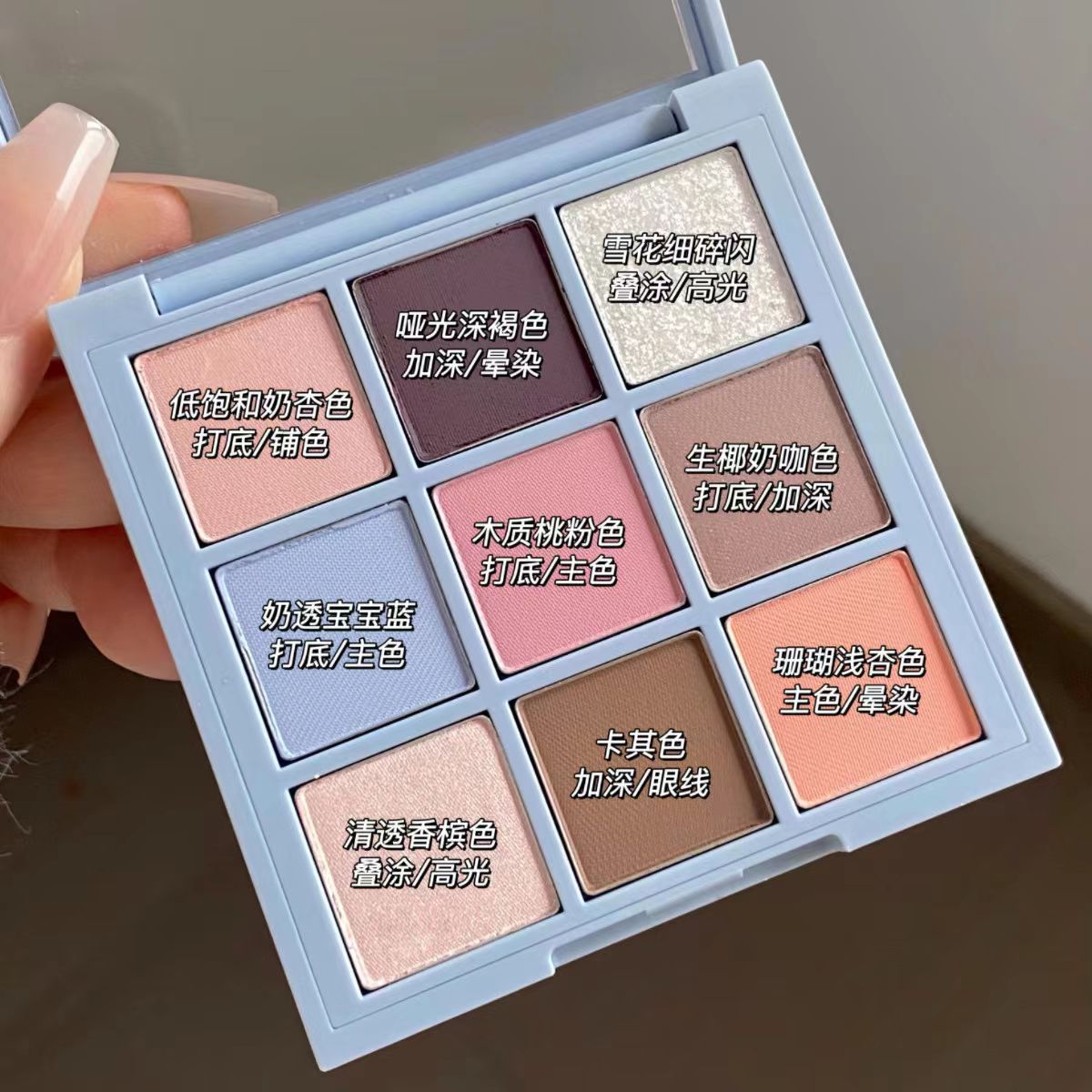 Девятицветные тени для век «Снежинка»; Девять цветов вишневого цвета; шоколад девять цветов; Галактика Милая Девять Цветов; Девушка Мечта Девять Цветов; Кошачий глаз девять цветов; Девять цветов кумквата лимона; Девять цветов дымчато-розовой розы; Девятицветная таро-паста; Девять цветов панк-дым; Девять цветов ледяного и снежного сияния; Девять цветов синий и белый; Девять цветных пайеток 01 # Красочное стекло; Девять цветных пайеток 02#мигающий свет