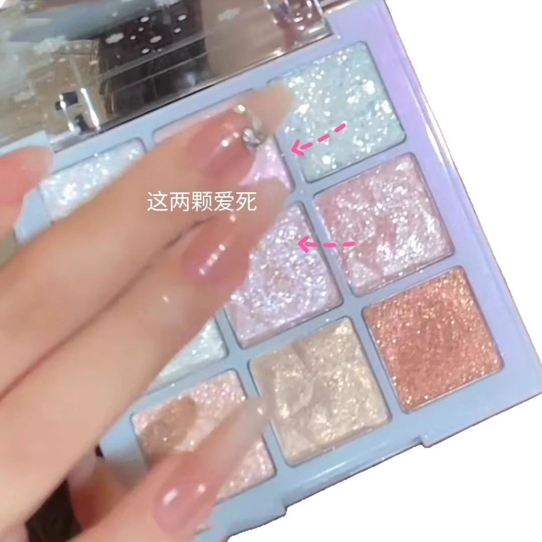 Богатые цветы на земле! Сверхмигающий девятицветный теней для век