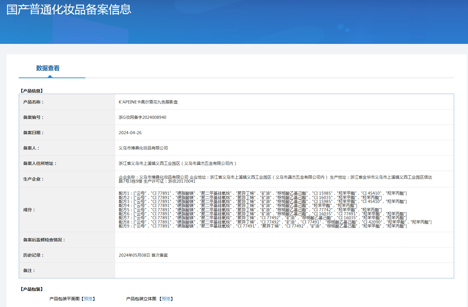 产品名称:K'APEINE卡佩尔雪花九色眼影盘