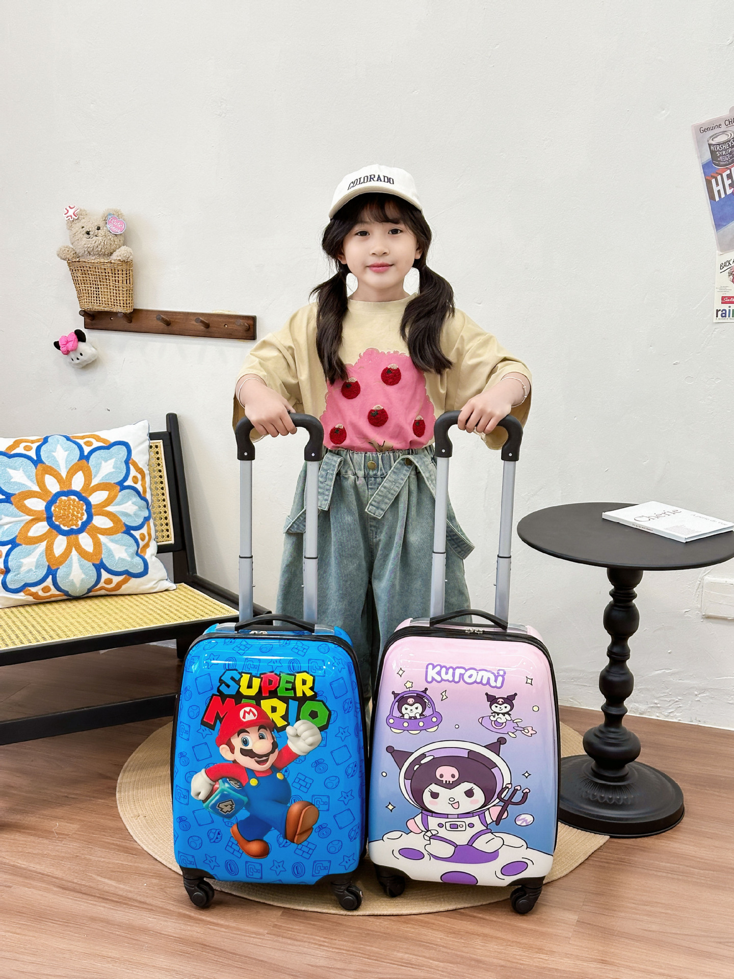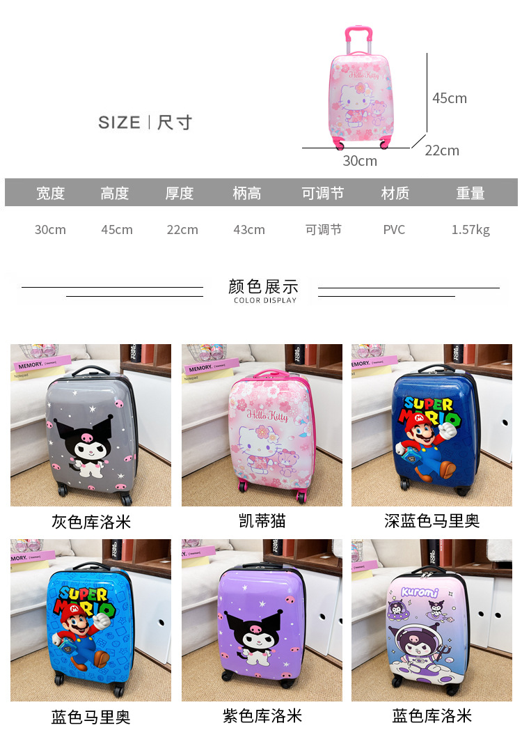 Детский чемодан-тележка, милый чемодан с мультяшным принтом, милый чемодан с Куроми, подарочная коробка, чемодан-тележка для мальчиков