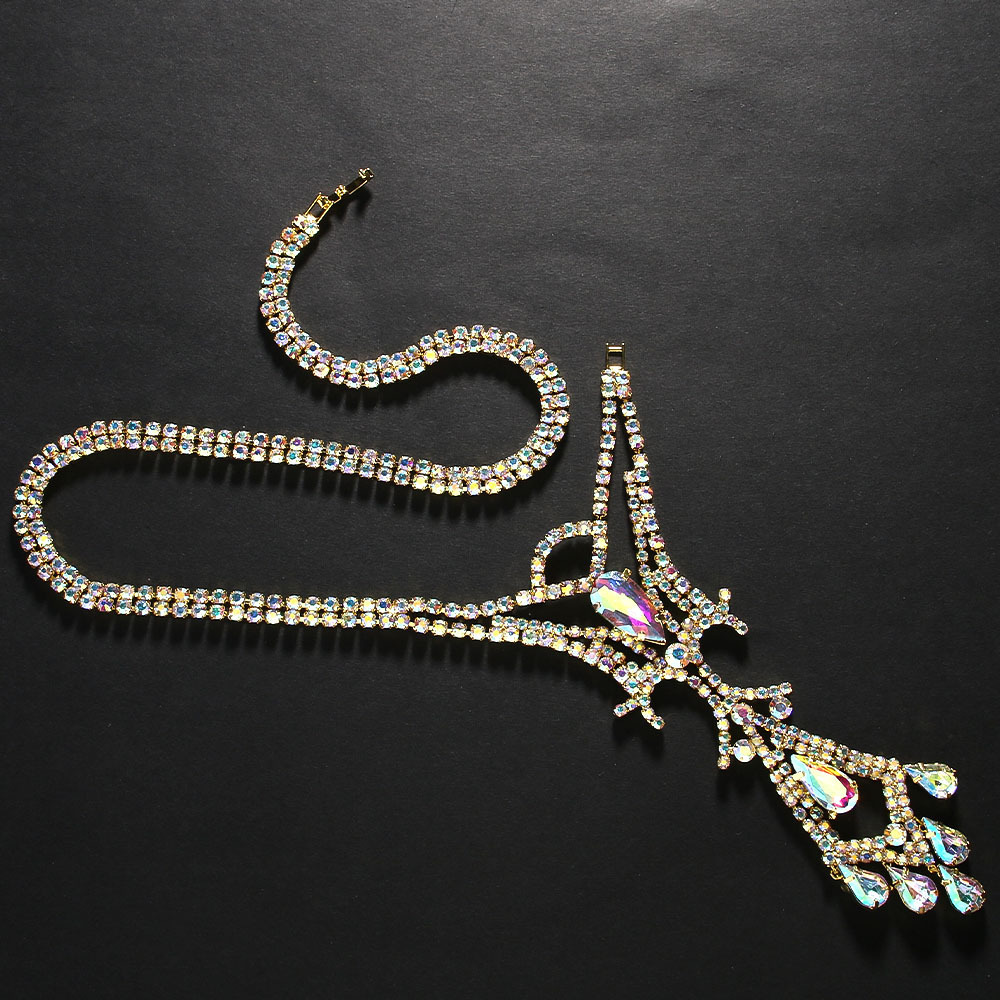 Амазонка взрывает огонь, капли воды, задняя цепь высокого уровня чувство, стразы, тело цепи, богемный аксессуар body chain