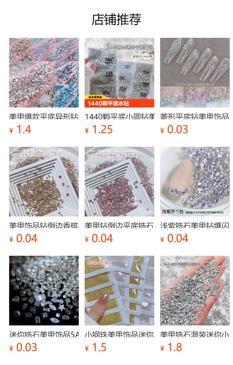 尺寸约为:1.5*3mm马眼 1.5*3mm长方 2*4mm 马眼 2*4mm 长条 2.0mm正方 2.5mm正方 3.0mm正方 2.0mm圆 3.0mm圆 2*3mm水滴 2*3mm旦形 1*2*3 t形 3*3mm三角 3*4mm旦形 3*4mm水滴 3*3mm爱心 3*3mm五角星