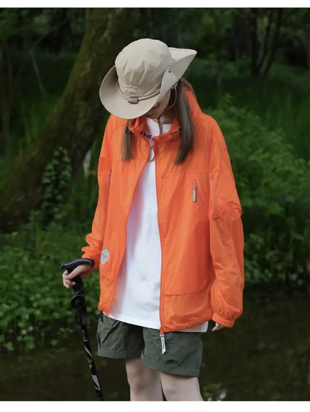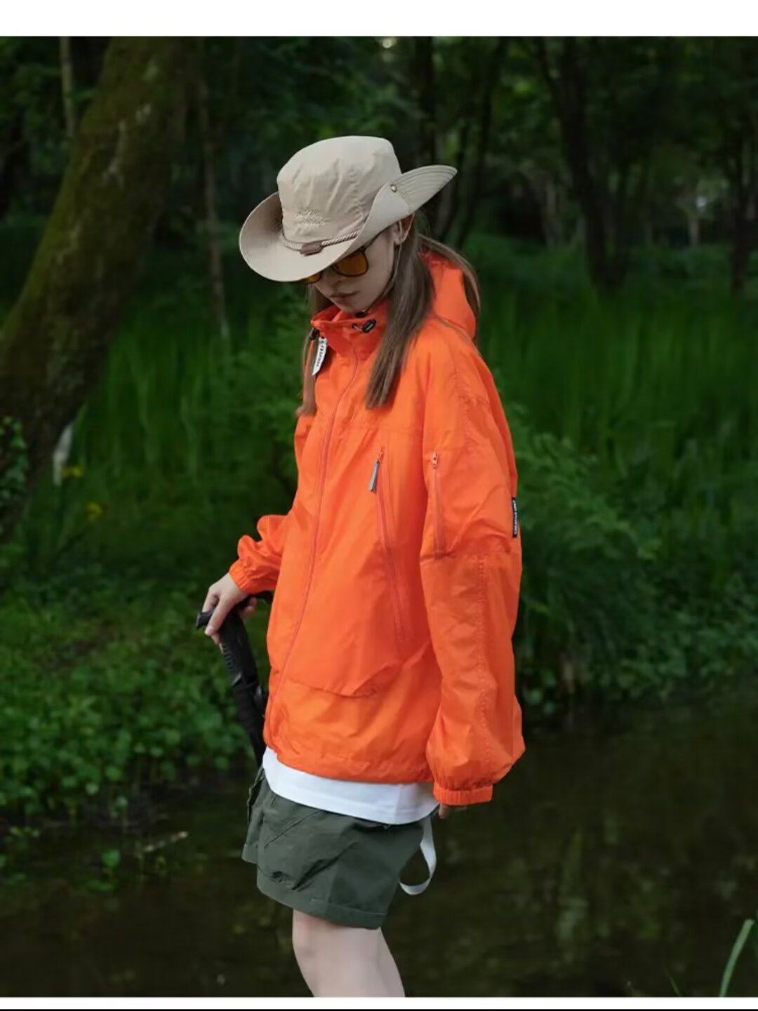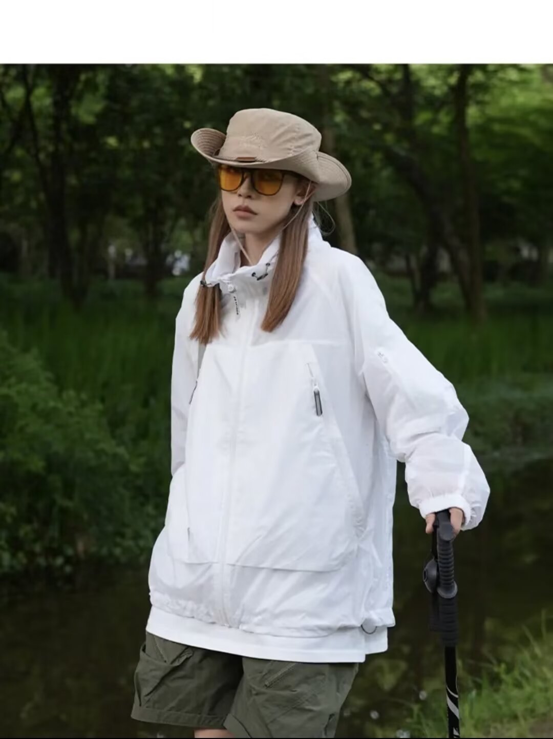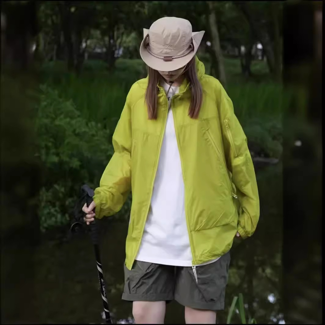 Открытый солнцезащитный крем мужской и женский сплошной цвет летом новый тонкий и дышащий анти-ультрафиолетовый солнцезащитный костюм пара с капюшоном
