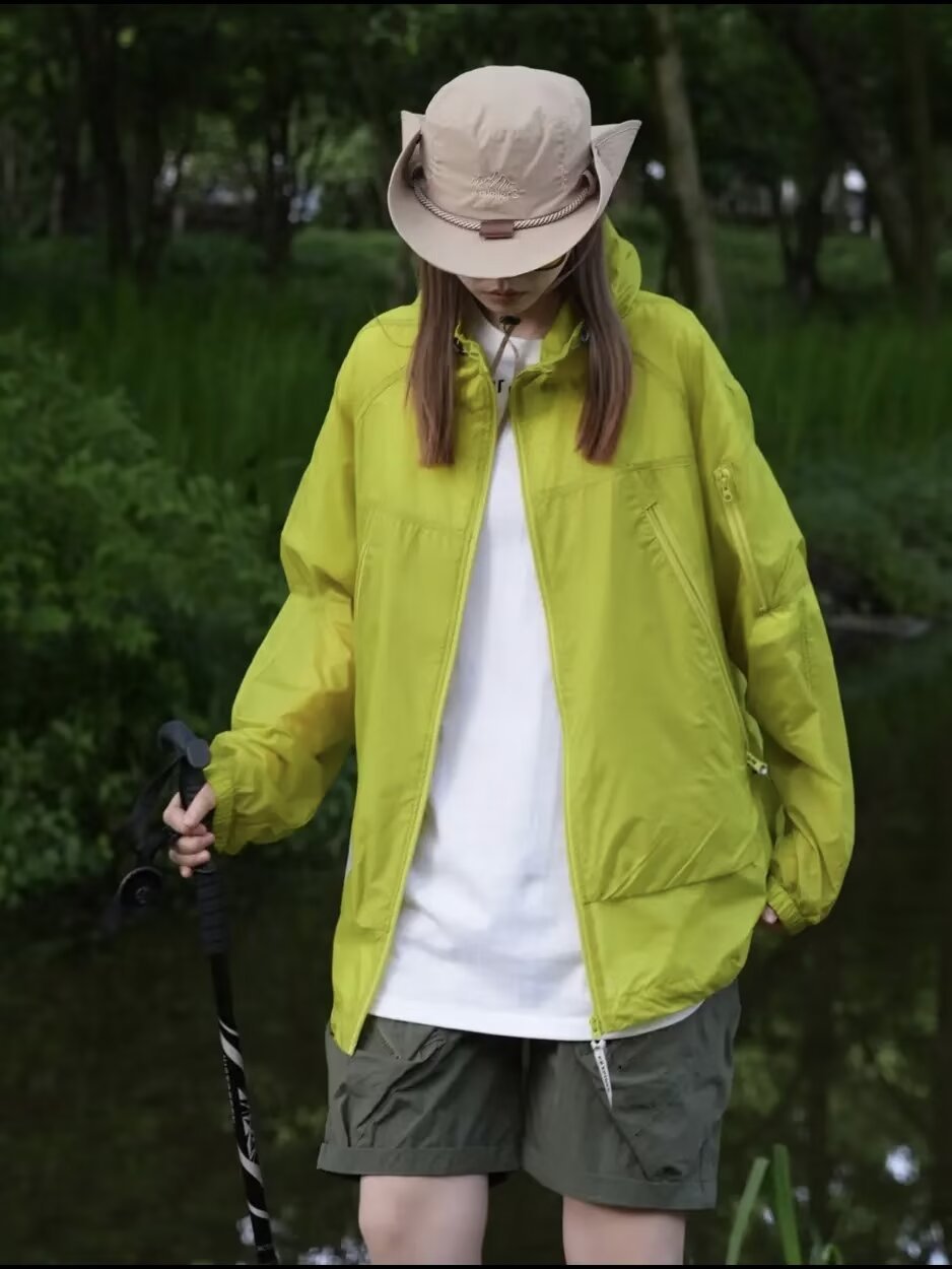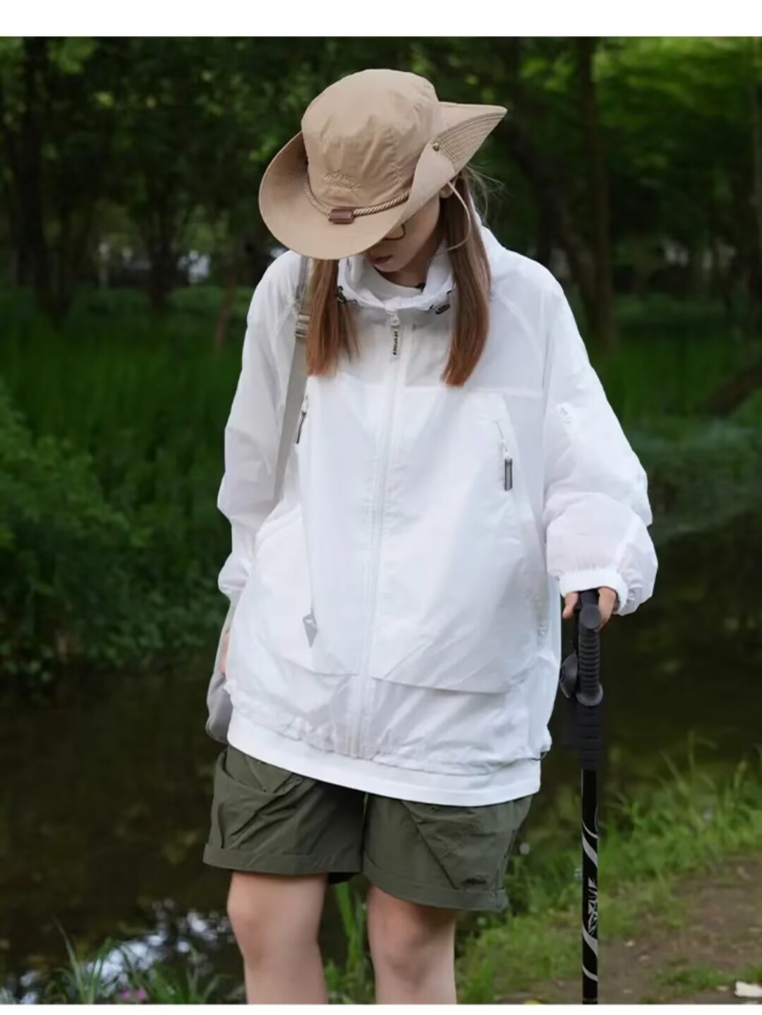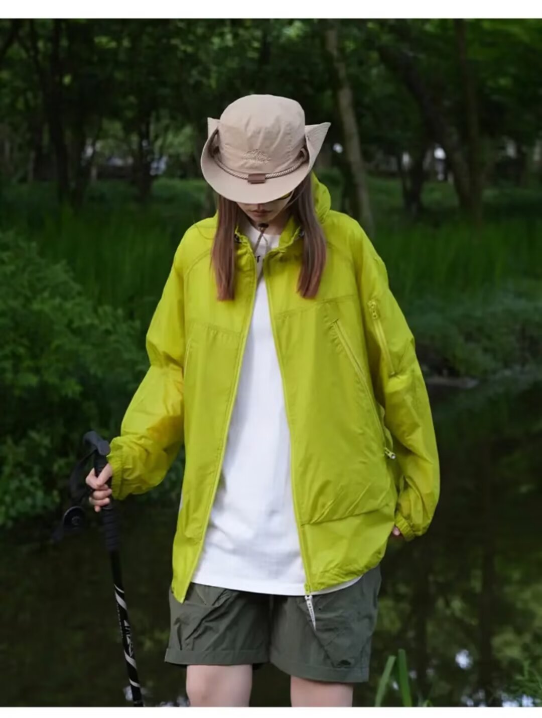 Открытый солнцезащитный крем мужской и женский сплошной цвет летом новый тонкий и дышащий анти-ультрафиолетовый солнцезащитный костюм пара с капюшоном