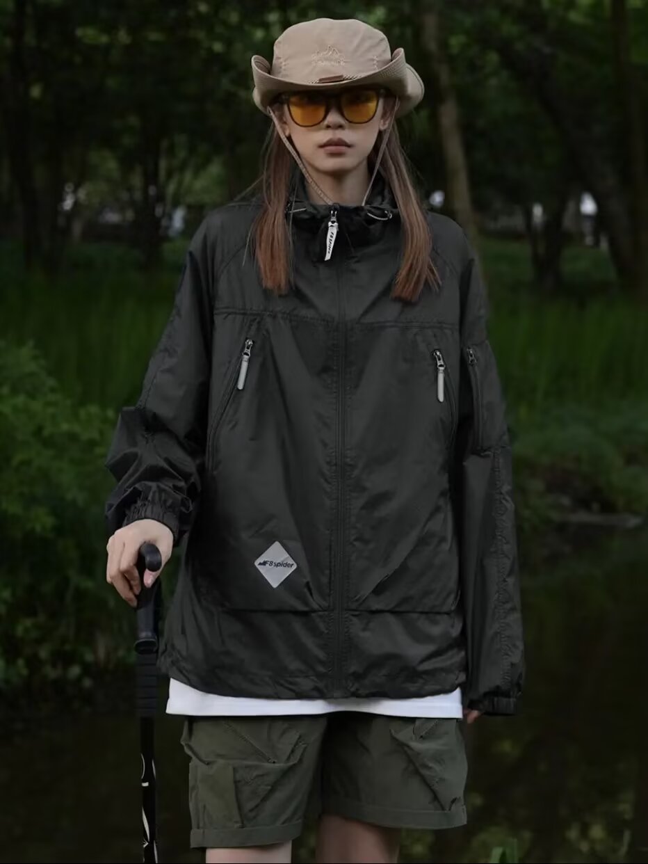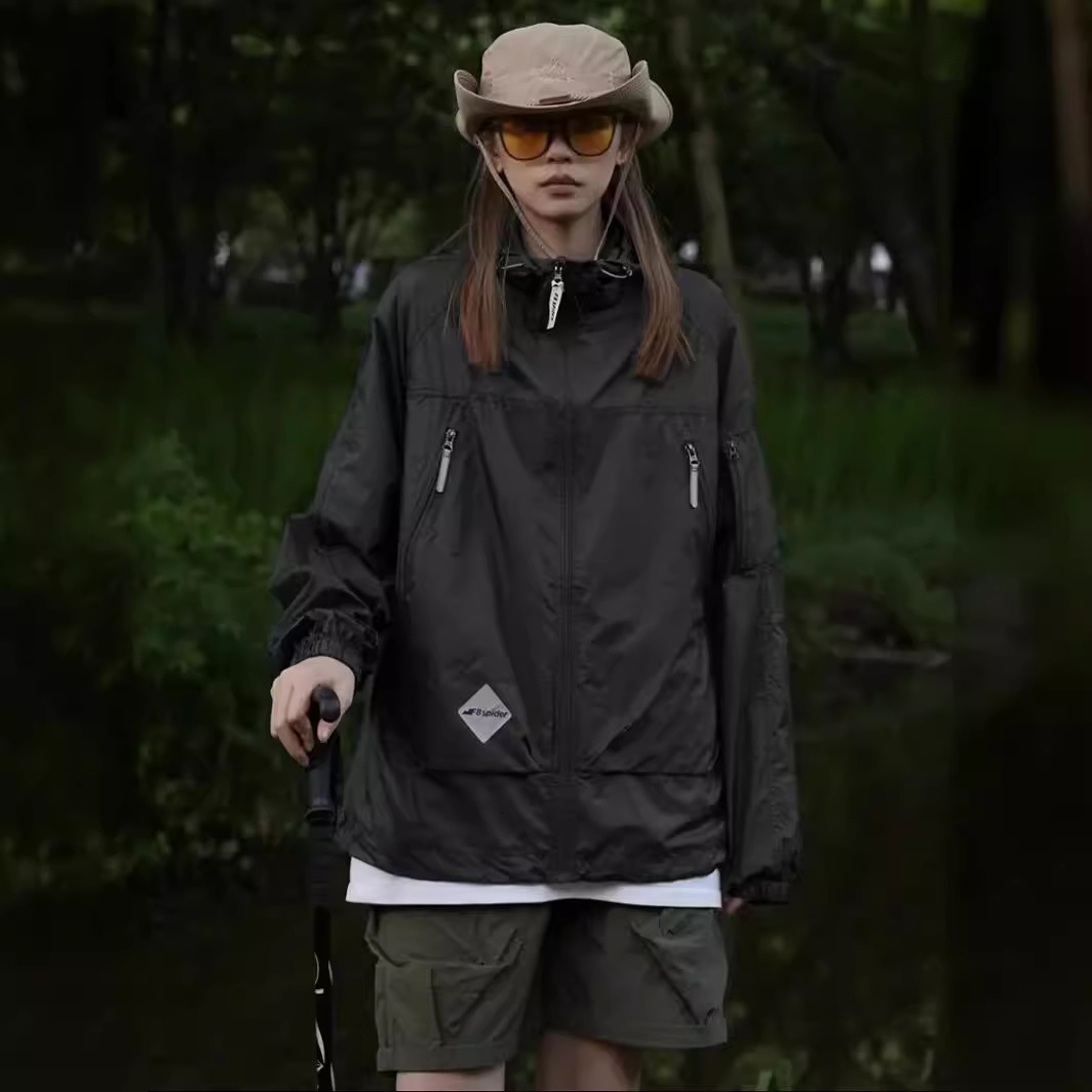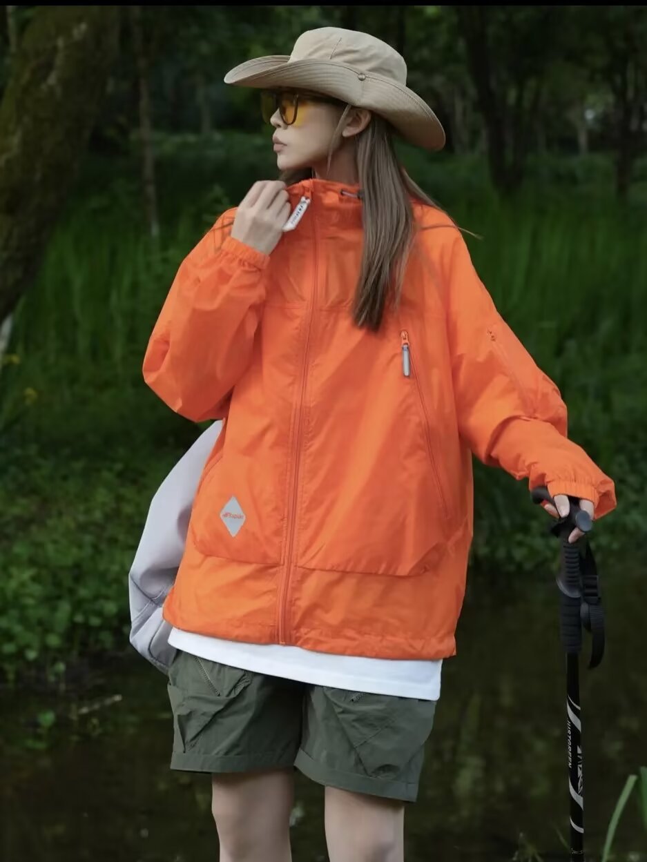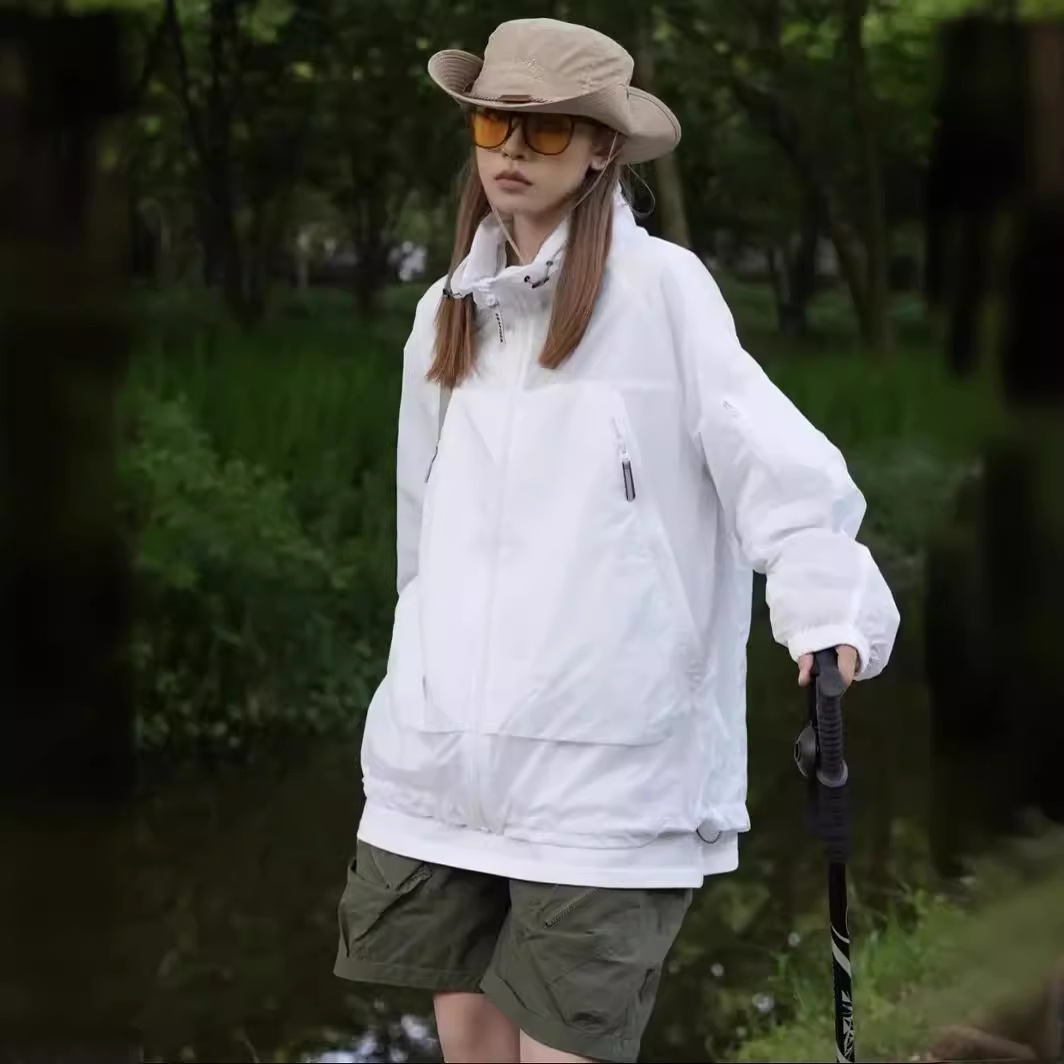 Открытый солнцезащитный крем мужской и женский сплошной цвет летом новый тонкий и дышащий анти-ультрафиолетовый солнцезащитный костюм пара с капюшоном