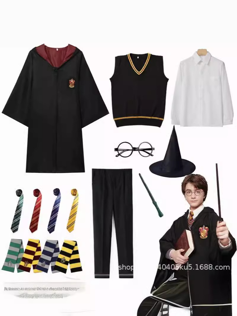красный магический плащ; зеленый волшебный плащ; синий волшебный халат; желтый магический плащ; Красный магический плащ + галстук; Зеленый магический плащ + галстук; Синий магический халат + галстук; Желтый магический халат + галстук; Красный магический халат + галстук + шарф; Зеленый магический плащ + галстук + шарф; Синий магический халат + галстук + шарф; Желтый магический халат + галстук + шарф; Красный магический халат + галстук + шарф + волшебная палочка + очки; Зеленый магический плащ + галстук + шарф + волшебная палочка + очки; Синий магический халат + галстук + шарф + волшебная палочка + очки; Желтый магический халат + галстук + шарф + волшебная палочка + очки; Красный набор из семи предметов.; Зеленый набор из семи предметов.; Синий набор из семи предметов.; Желтый набор из семи предметов.; Красный набор из восьми предметов.; Зеленый набор из восьми предметов.; Синий набор из восьми предметов.; Желтый набор из восьми предметов.; Жилет колледжа (примечание колледжа); Серая короткая юбка; Черные брюки; Белая рубашка; Фінская одежда в сетку, одежда Slytherin, одежда Ravenclaw, одежда Hufflepuff, галстук Gryffindor [один размер подходит всем], галстук Slytherin [один размер подходит всем],