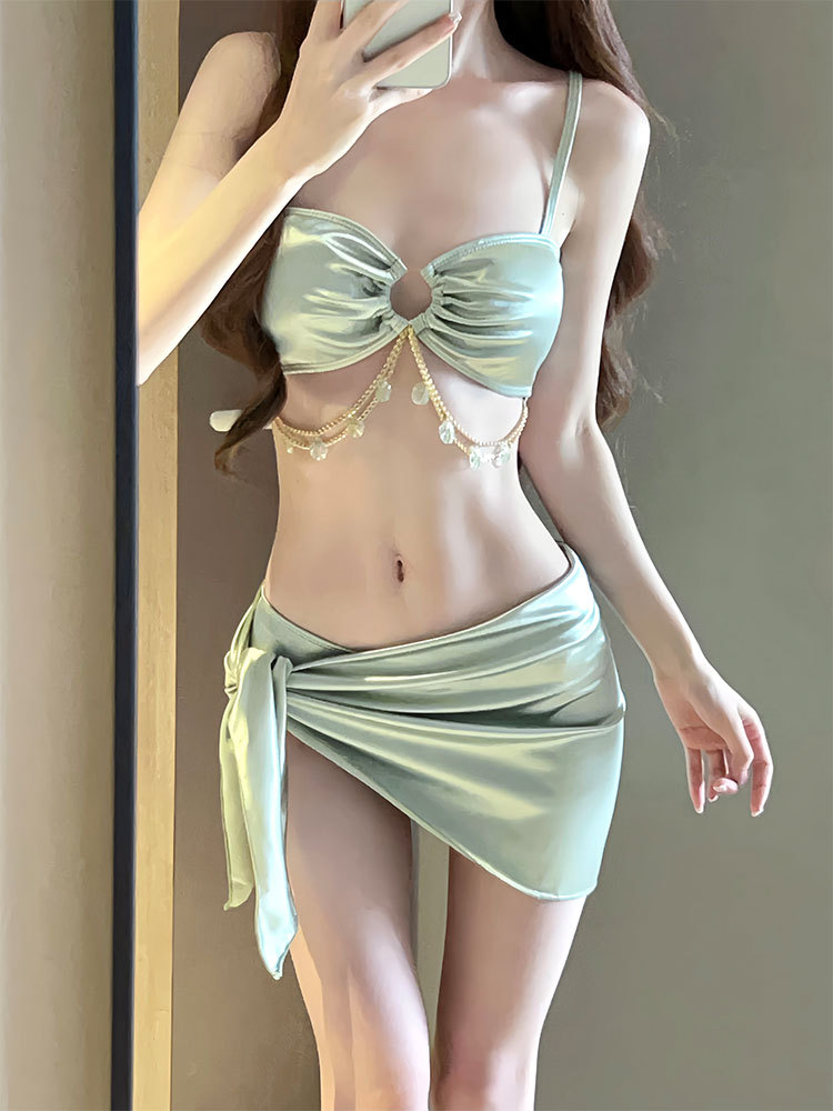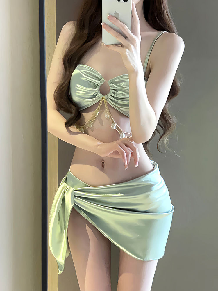 Цельный купальник женский, летний, сексуальный, из трех частей, новинка 2025, пуш-ап, для похудения, отпуск, элитное бикини, купание с горячими источниками