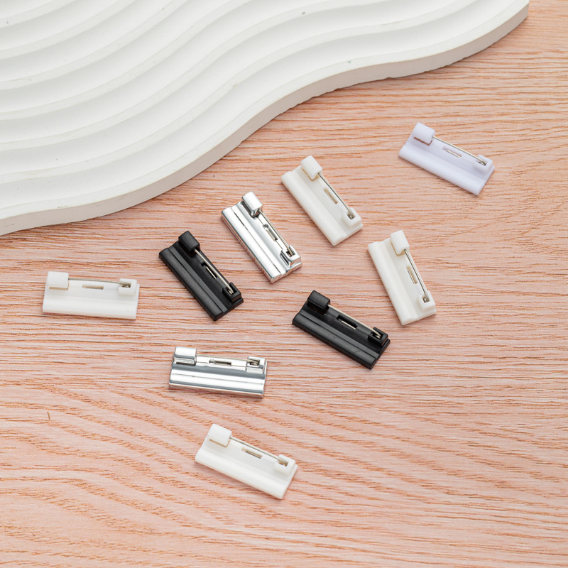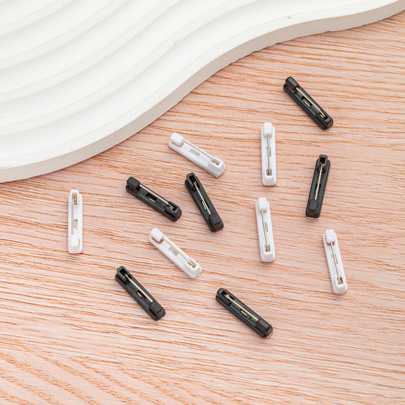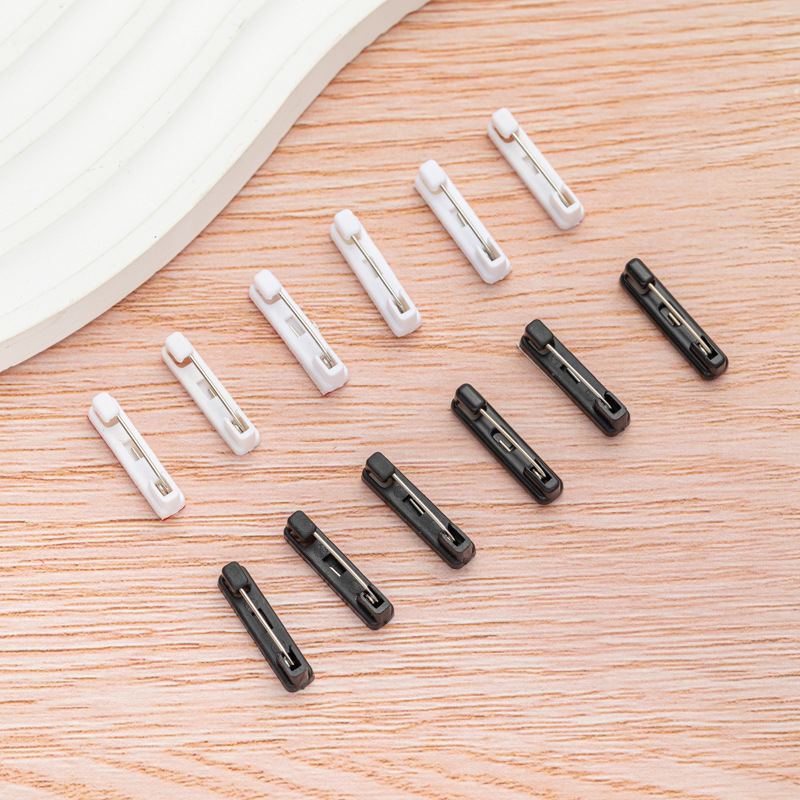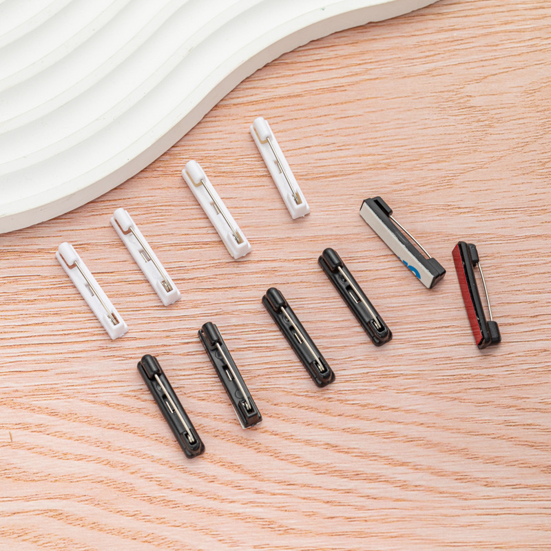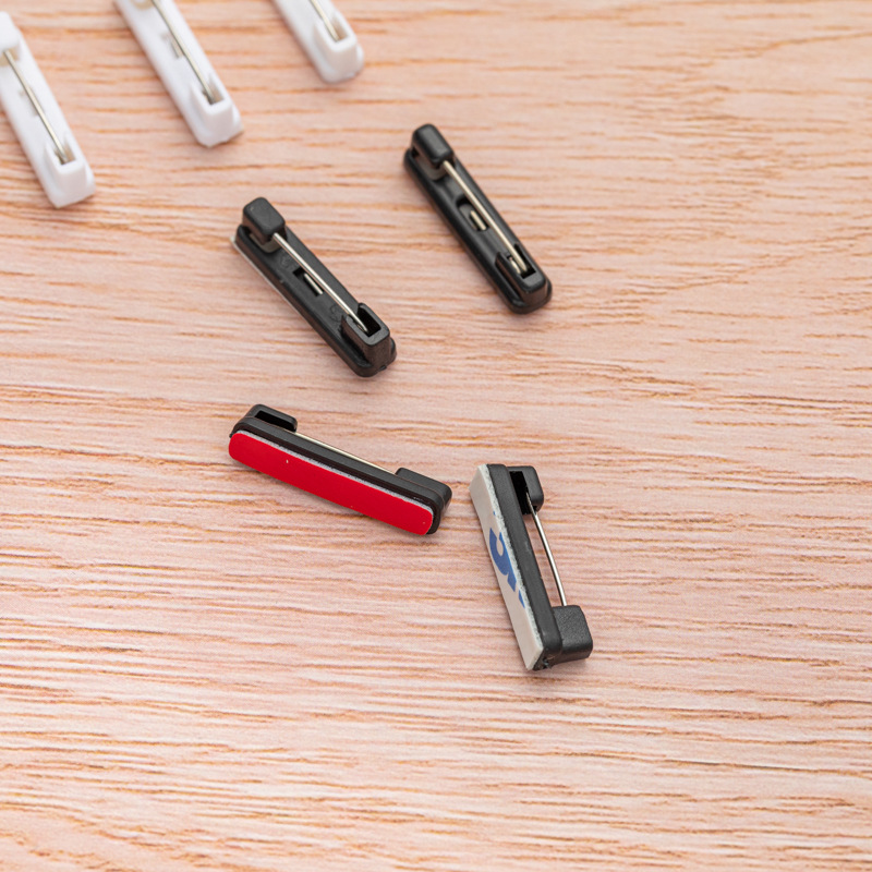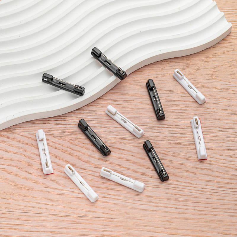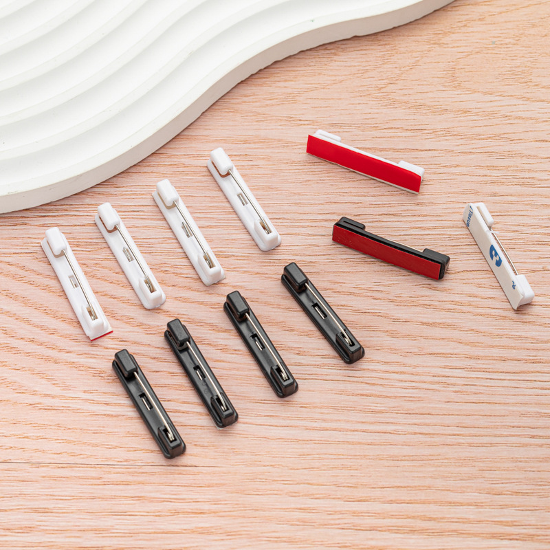 Белый пластиковый значок-бейдж на булавке с клейкой основой, черный пластиковый простой булавочный держатель для украшений, брошей, корсажей