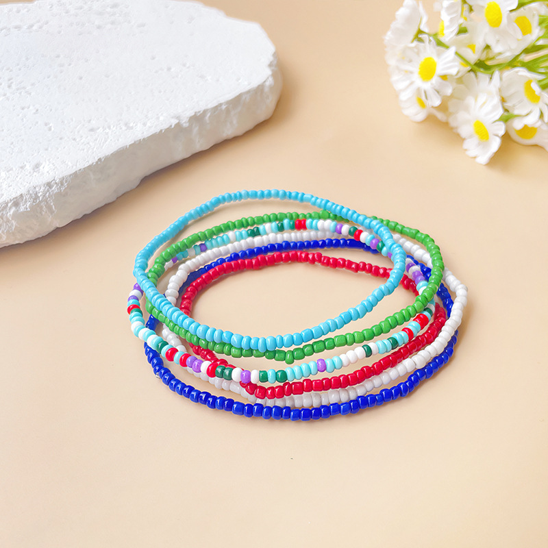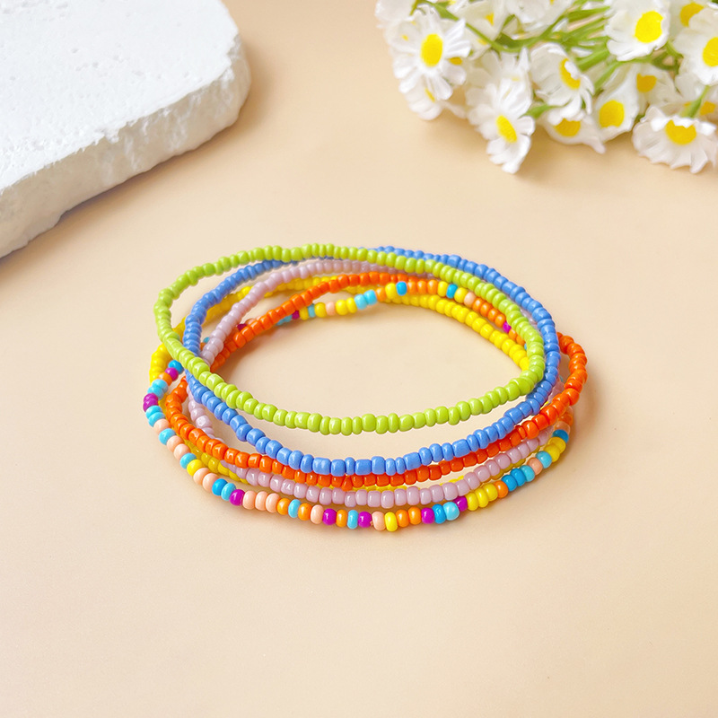 Богемный браслет на ногу из рисовых бусин, европейско-американский, пляжный, персонализированный, разноцветный, ручной работы, на эластичной веревке, украшение для ног