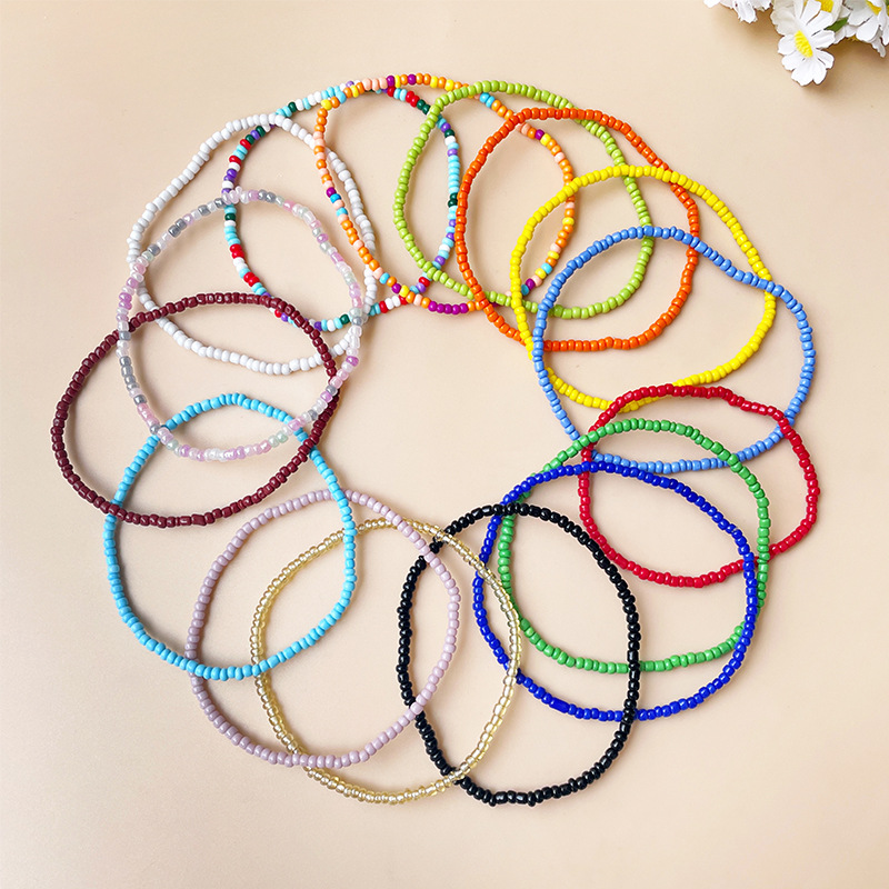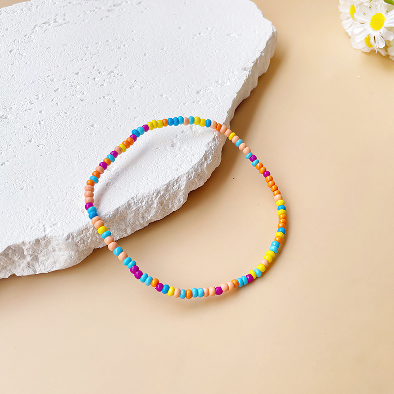 波西米亚米珠脚链欧美跨境沙滩个性彩色串珠脚饰纯手工弹力绳饰品
