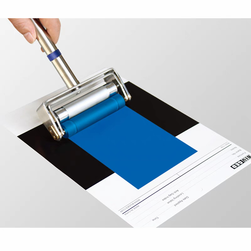 说明:手动展色轮(油墨打样仪)专门为柔印油墨配色打样设计,广泛应用于油墨生产、纸箱印刷、柔版印刷等行业。它由不锈钢支架、金属网纹辊及耐溶剂橡胶辊组成,能将水性油墨、凹印油墨、油墨或其它液态涂料涂于各种底材上,制得重现性色样。它操作简单、使用方便,具有摸拟印刷机印刷效果的功能,是配色、调墨检测水性油墨印刷性能及颜色深浅的工具,同时也是各印刷厂检测专色的工具。