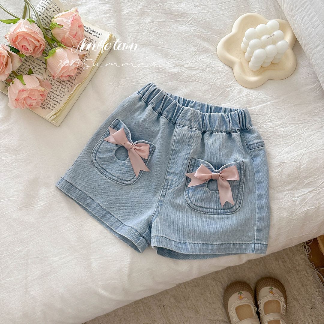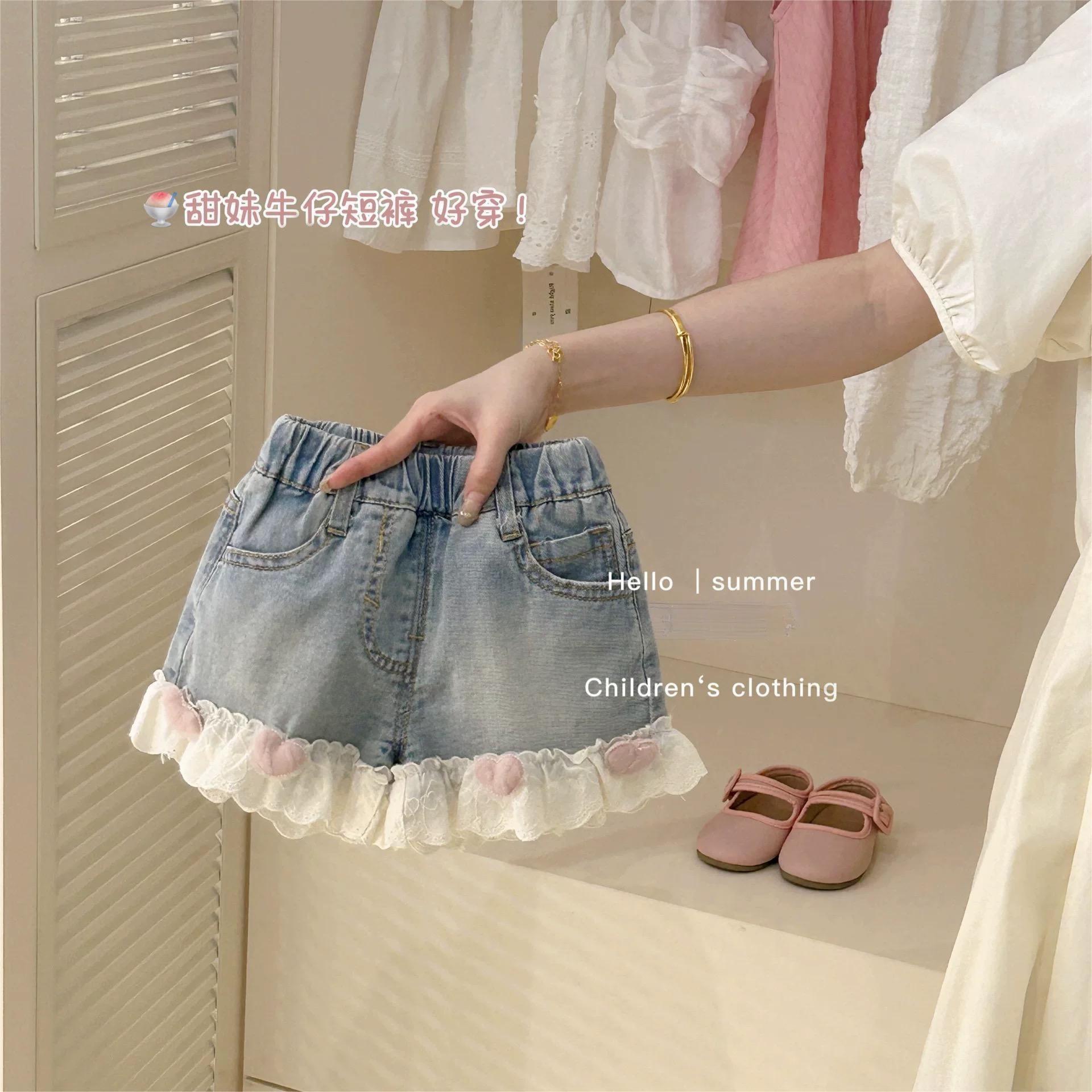 Девушка летняя джинсовая юбка малышка корейская версия новая иностранная милая банта кружева плиссированная юбка прилив