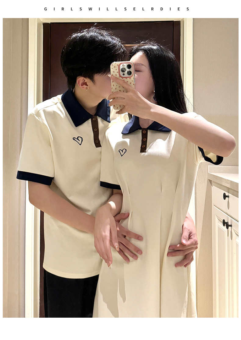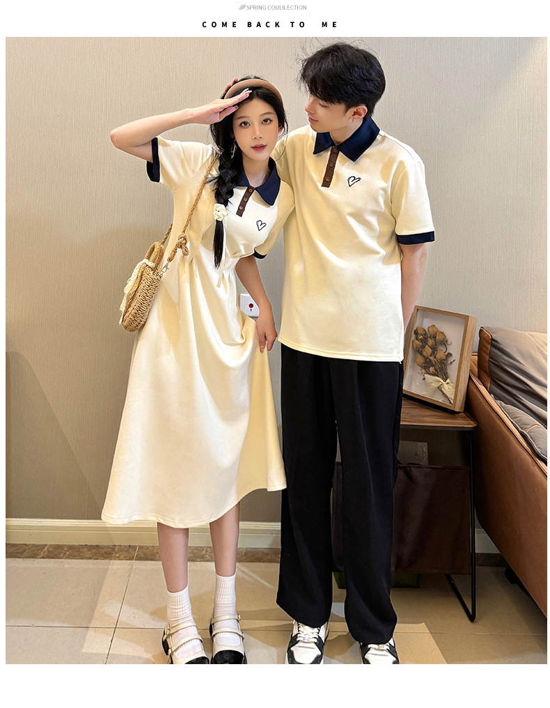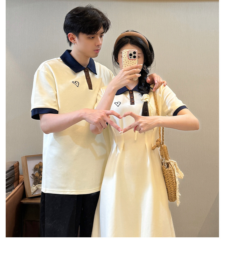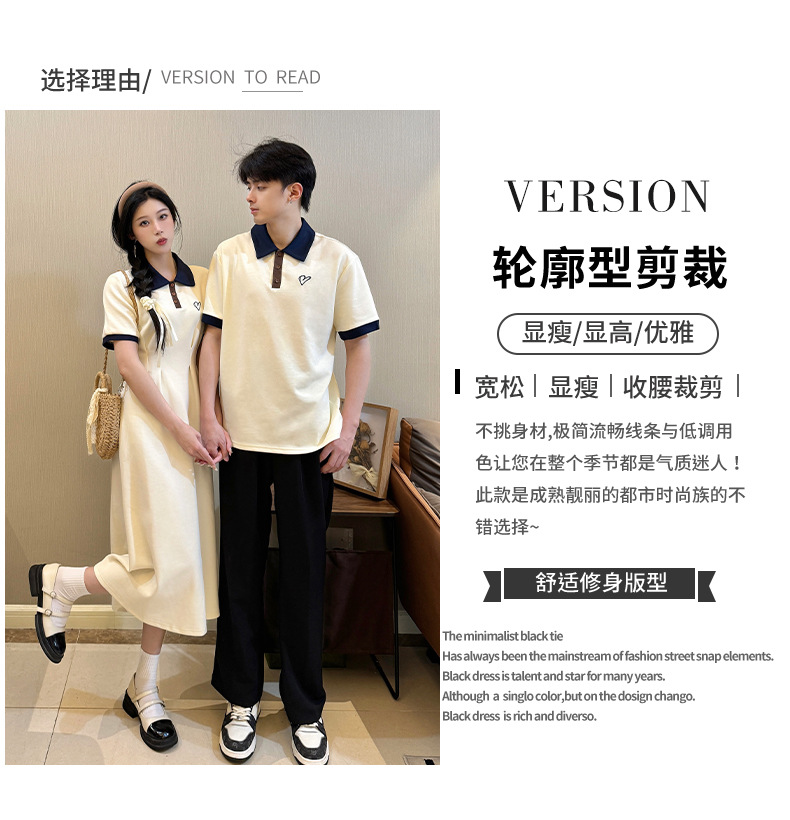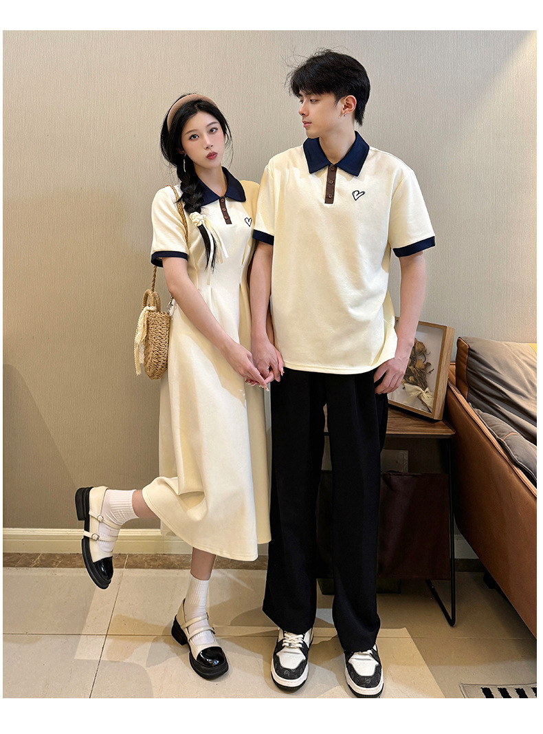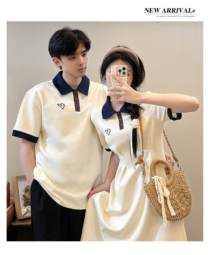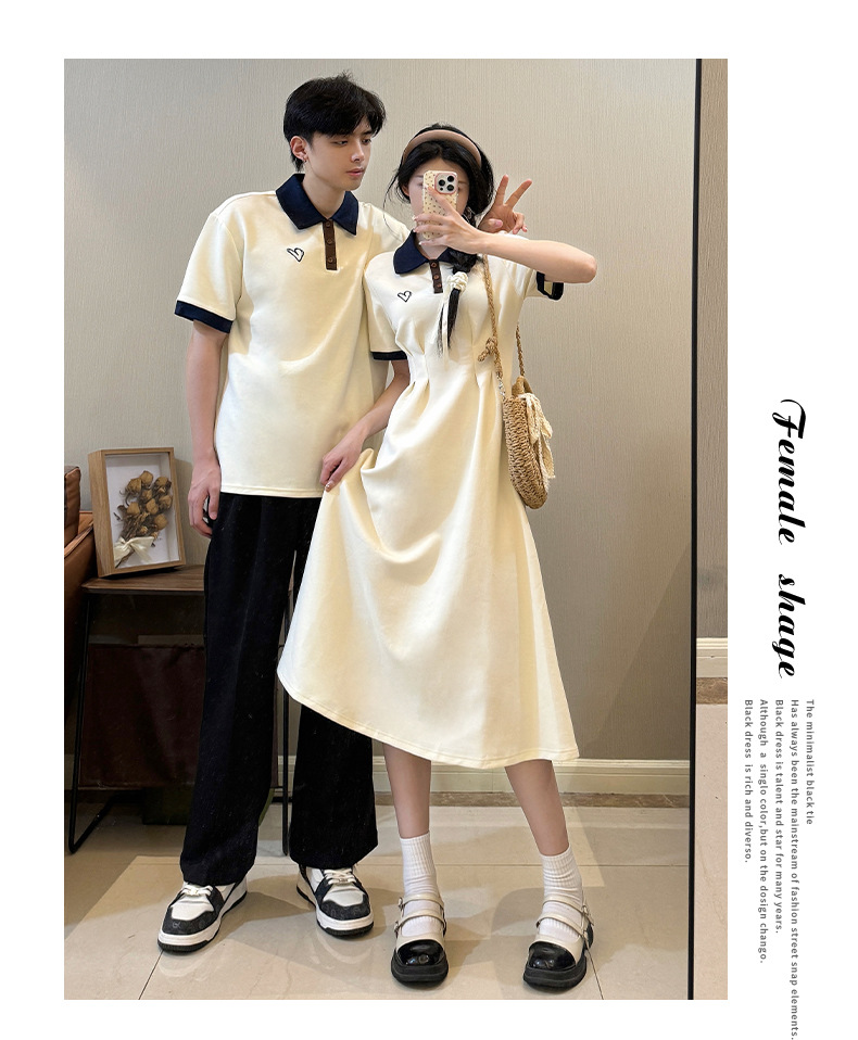 2024 Летняя новая пара наряд с поло-воротником с короткими рукавами платье Академия ветра с короткими рукавами