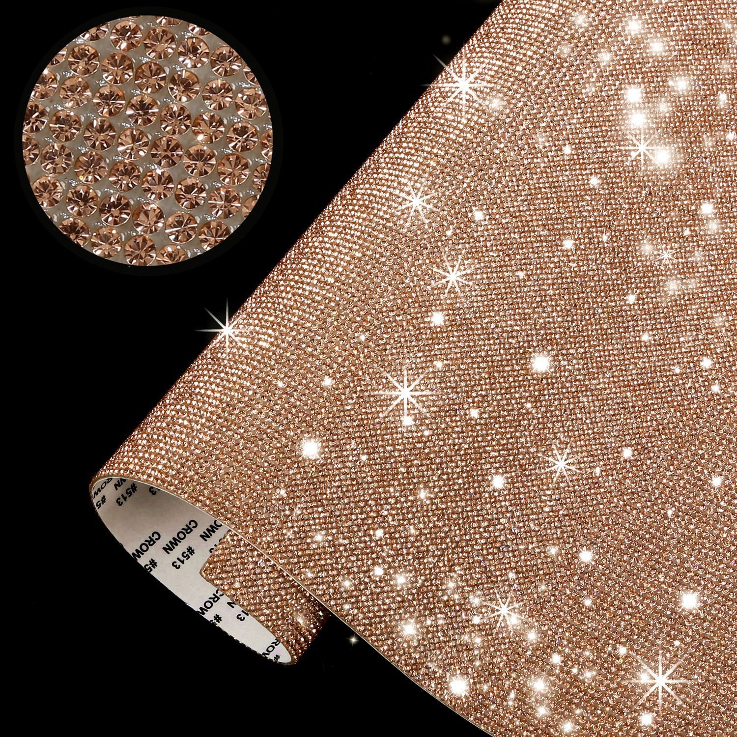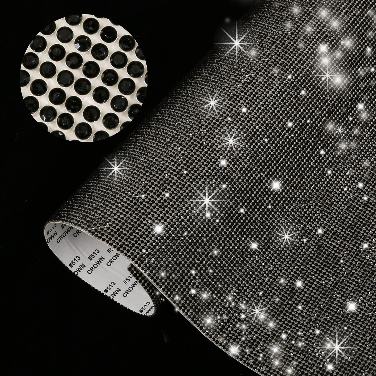 本品为水晶玻璃钻,一张尺寸:24*40CM。6号水钻(2mm)排数108*180,8号水钻(2.3mm)排数96*160。玻璃水钻色有白色、黑色、香槟、大红等,颜色可按要求定做。软胶为背面承托物。替代以铝质或铜质金属为承托物的钻网。优点是易于裁剪,可根据需要随意裁剪成所需形状。且由于软胶的特性使其更容易牢固地黏贴或固定在其它产品上面。