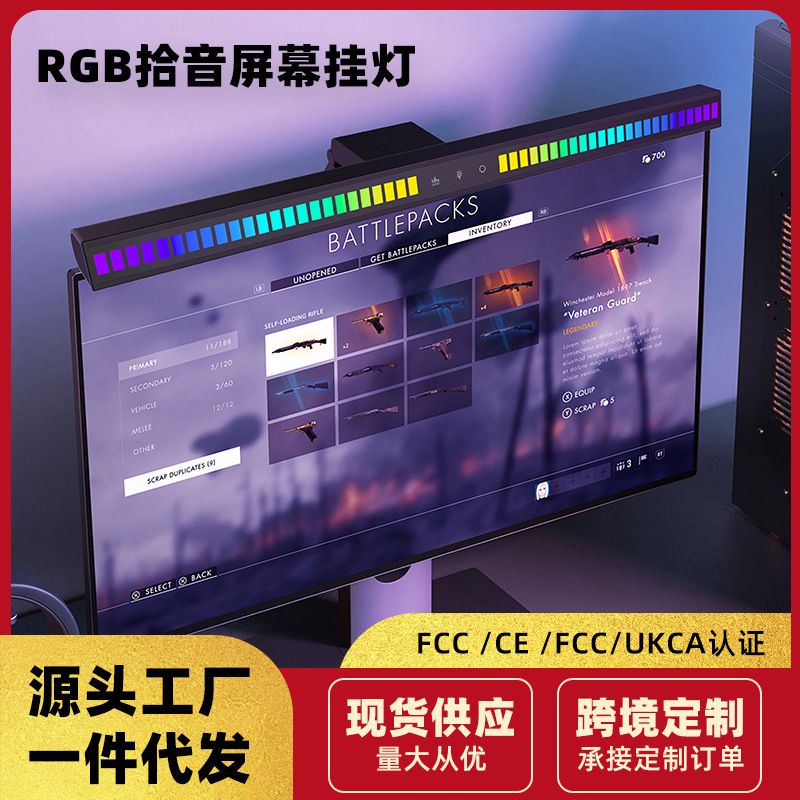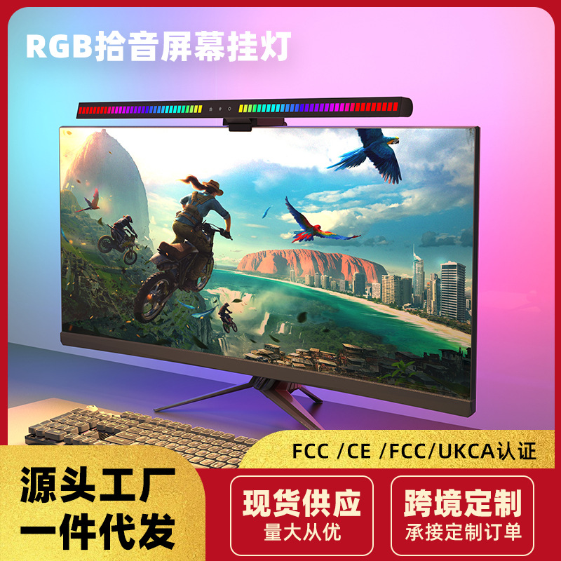 Универсальный светильник для большого экрана, игровой RGB-монитор с активацией звука и ритмом, подсветка для рабочего стола, компьютерный светильник, защита для глаз