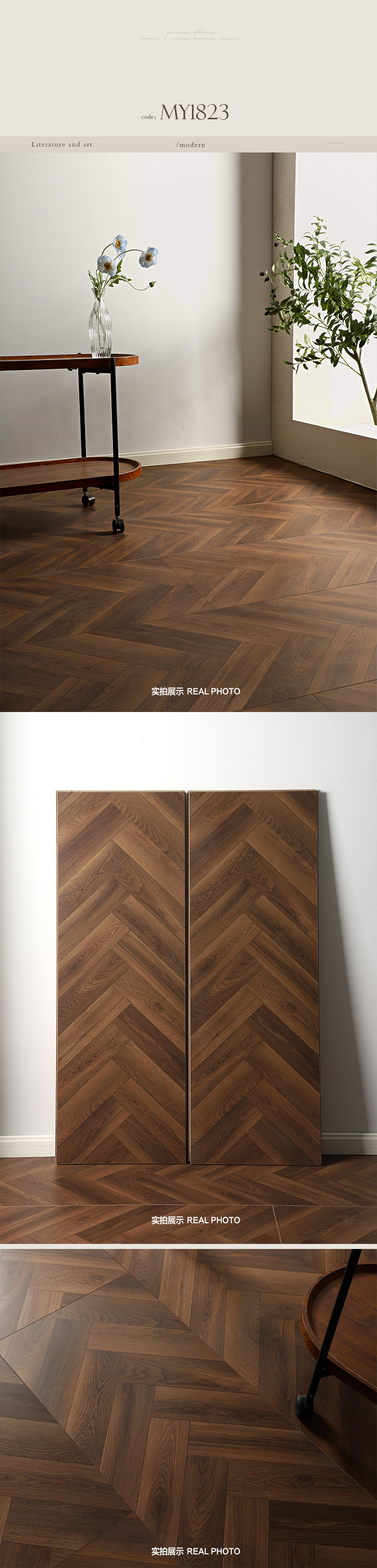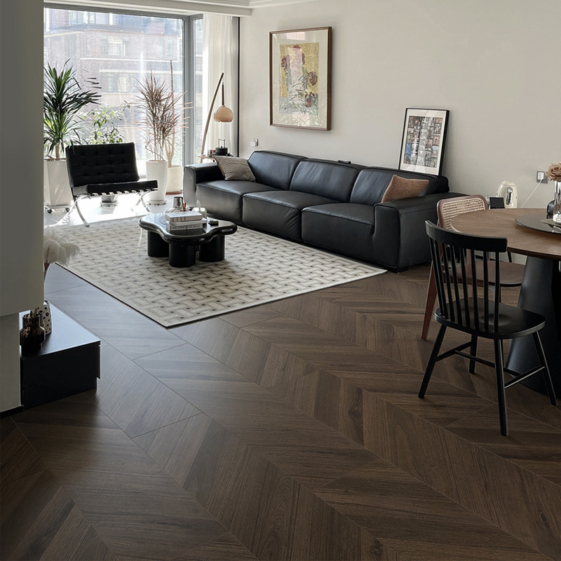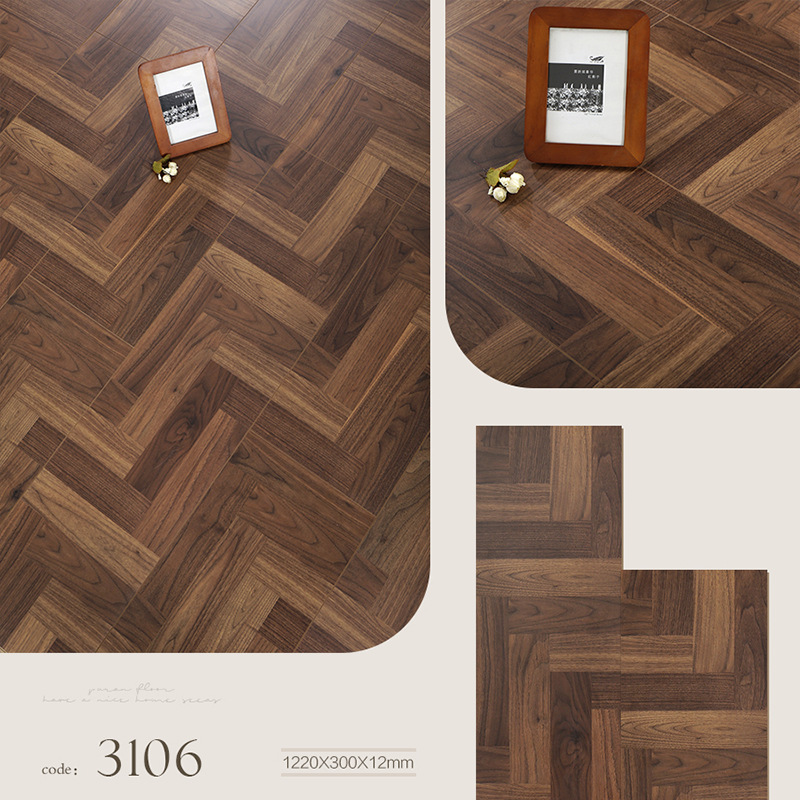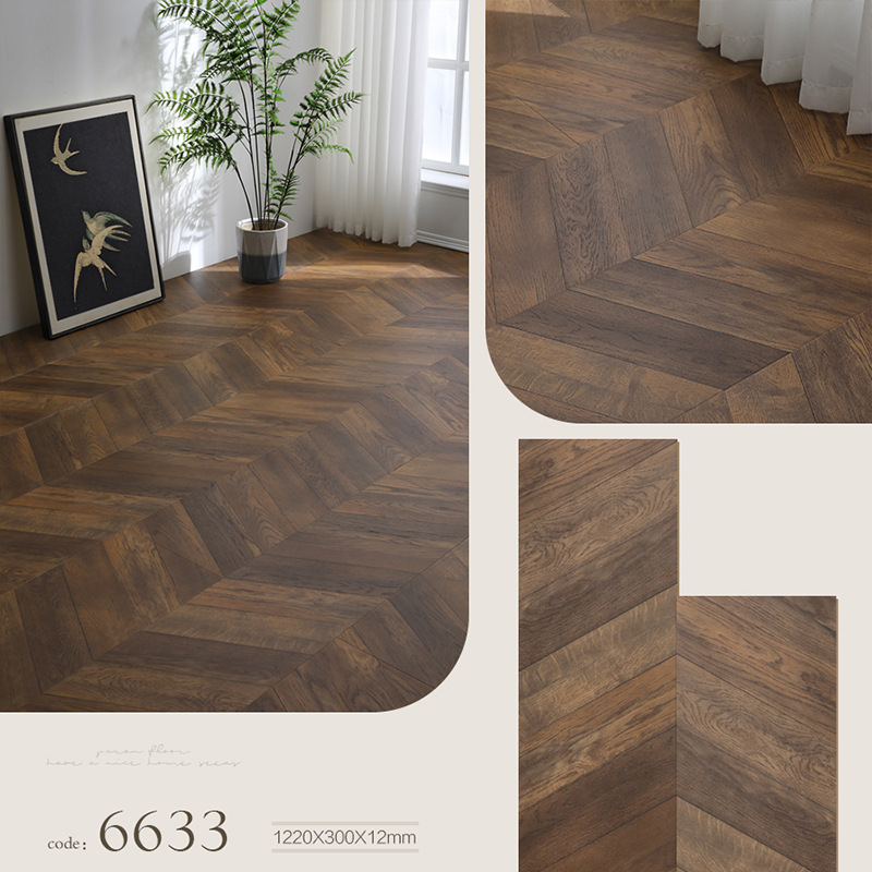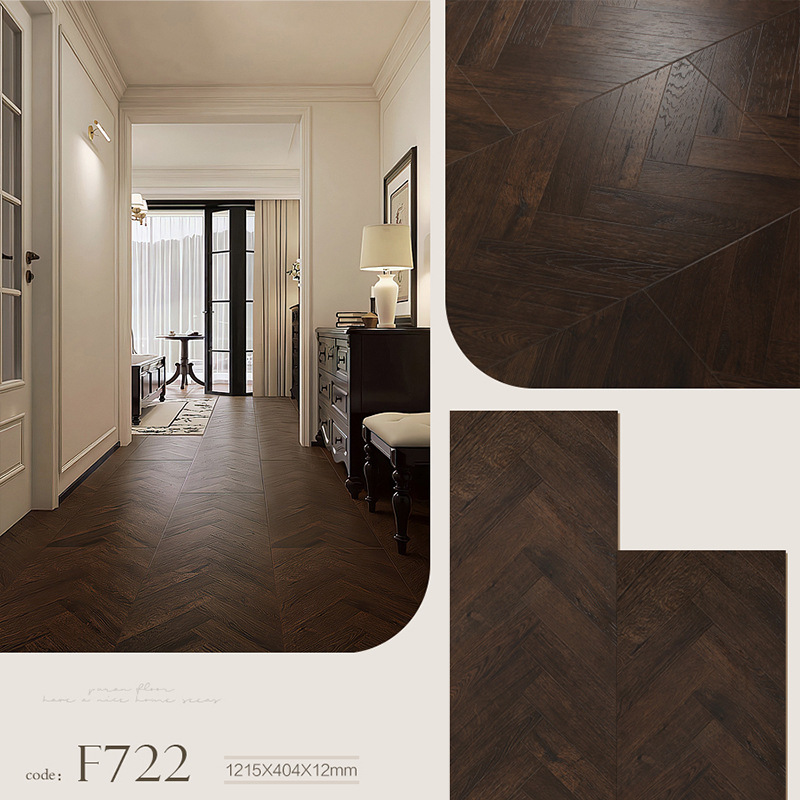 Ламинат под старину, узор «французский черный орех» (ёлка), для дома; мозаичный пол в античном стиле для гостевых домов
