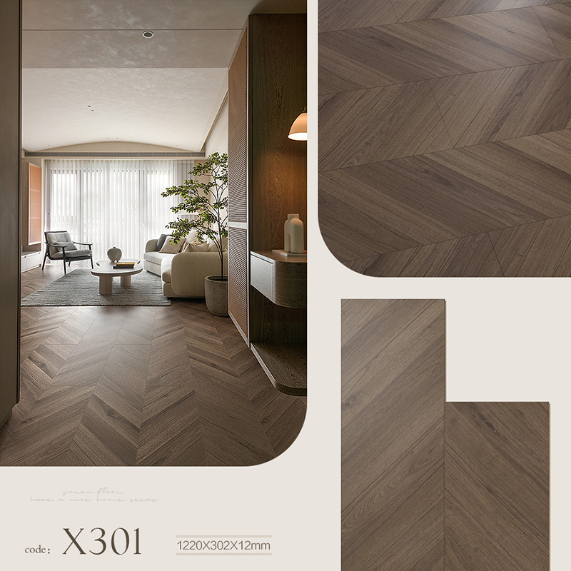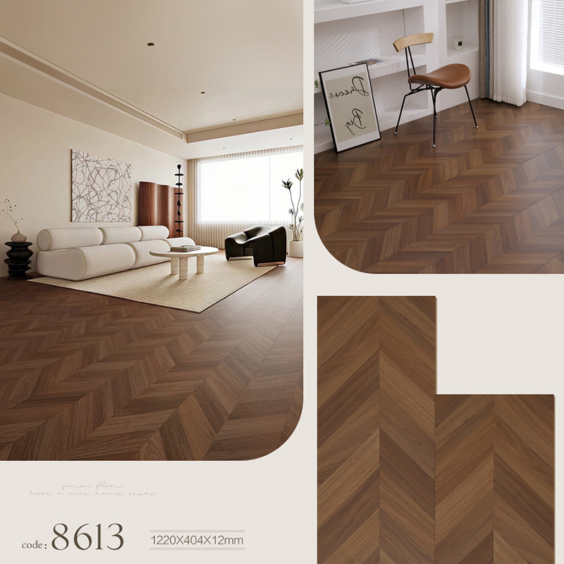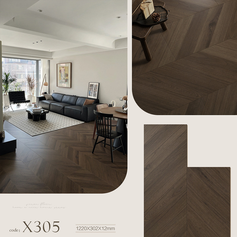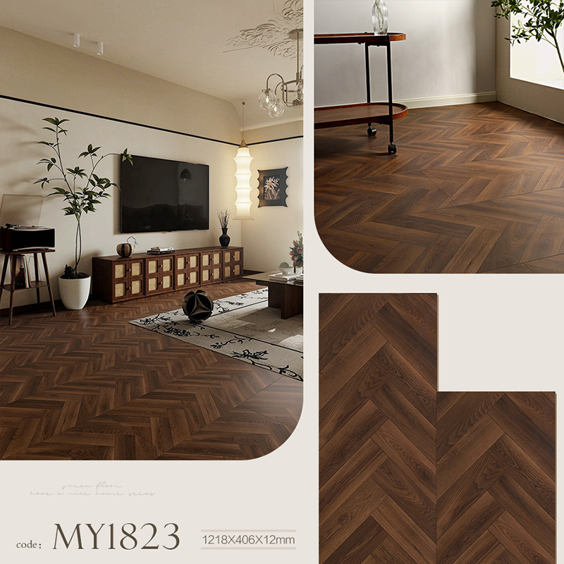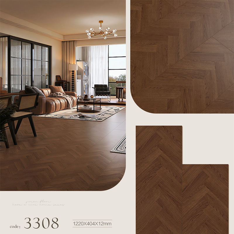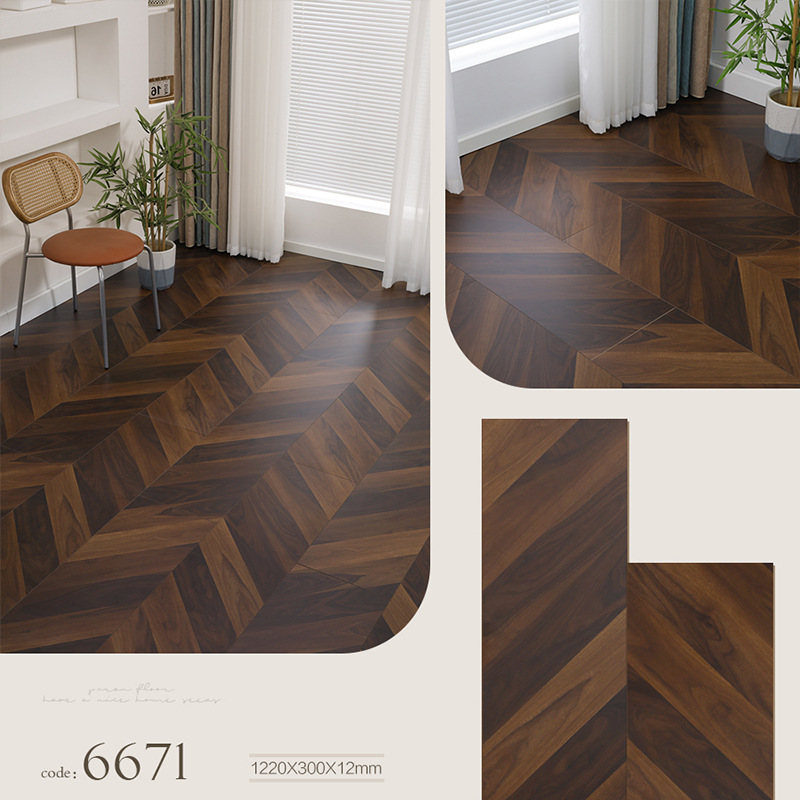 Ламинат под старину, узор «французский черный орех» (ёлка), для дома; мозаичный пол в античном стиле для гостевых домов