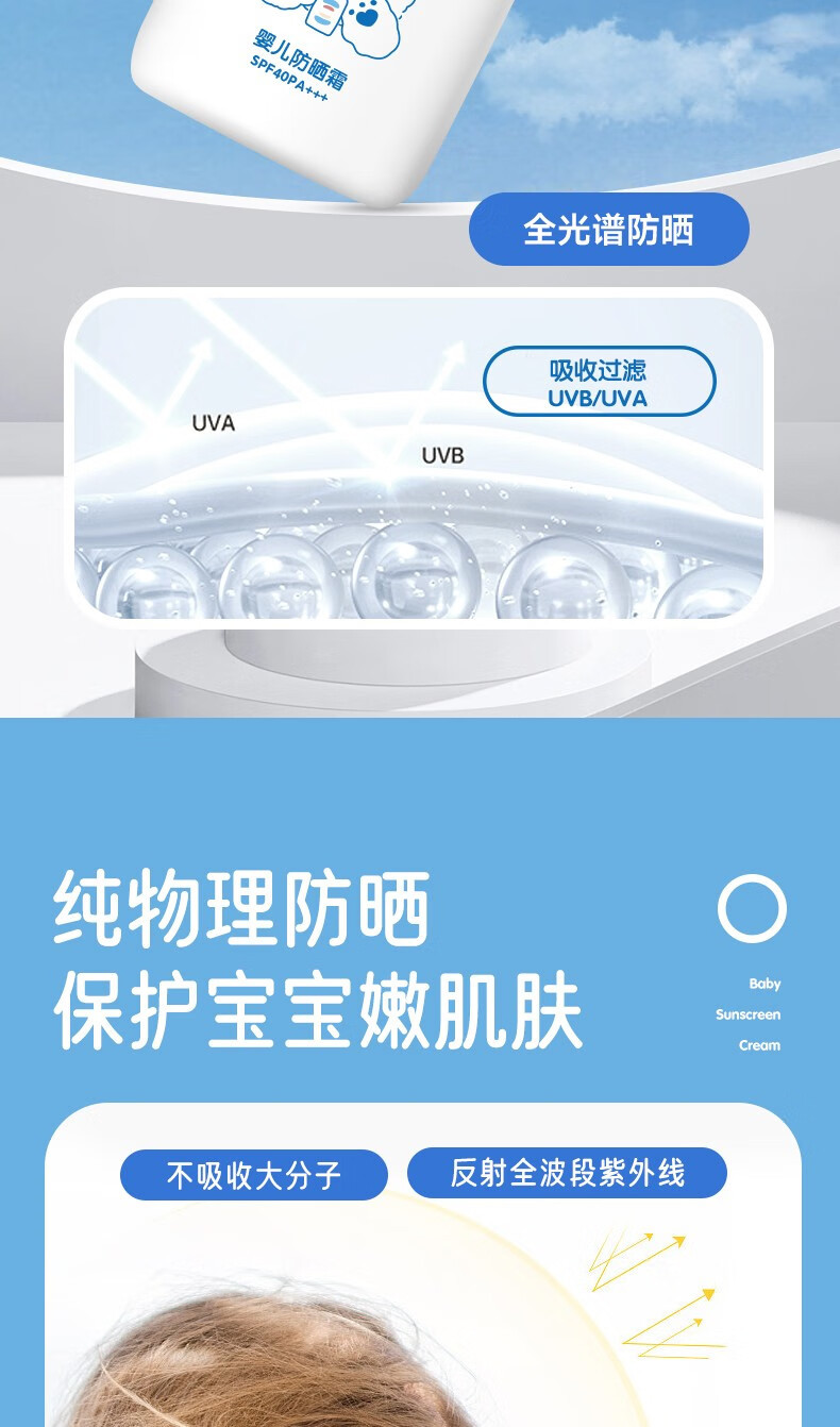 Excelamb Детский солнцезащитный крем Летний УФ Чистый физический солнцезащитный крем Детская изоляция Солнцезащитный крем