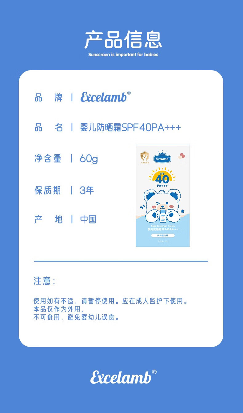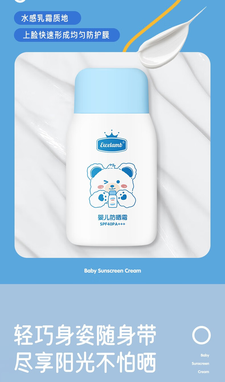 Солнцезащитный крем Excelamb для младенцев и детей, анти-УФ, изолирующий, увлажняющий и уходовый, двойная защита