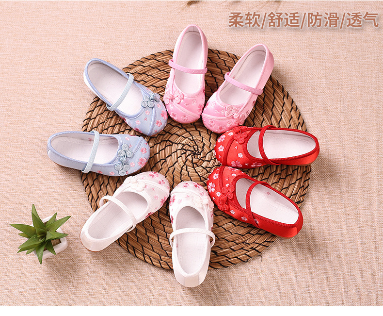 Весенние и осенние новые женские туфли Hanfu детские вышитые туфли Китайский стиль тканевые туфли Танцевальные туфли Новые китайские юбки для лошадей