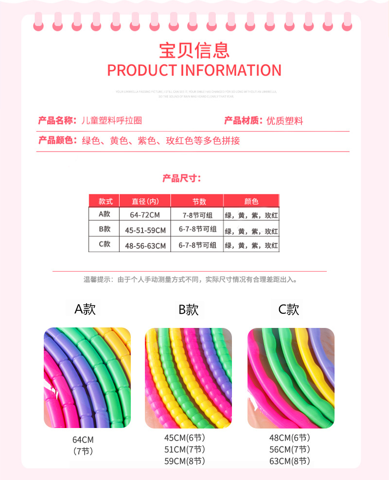 Детская пластиковая съемная обруч для шитых игрушек для детского сада может быть заполнена для взрослых фитнес-спорт обруч для обруч