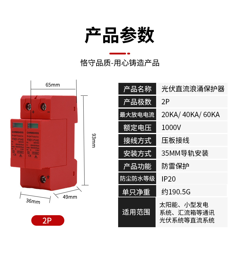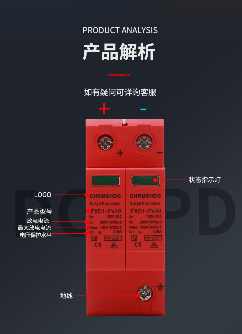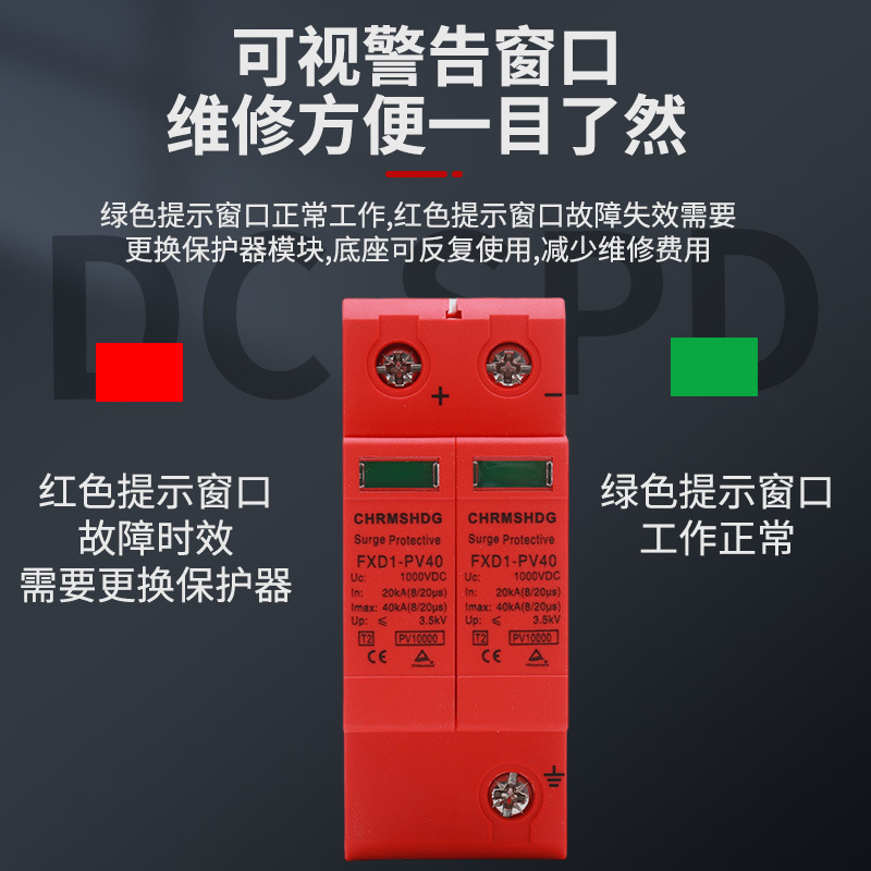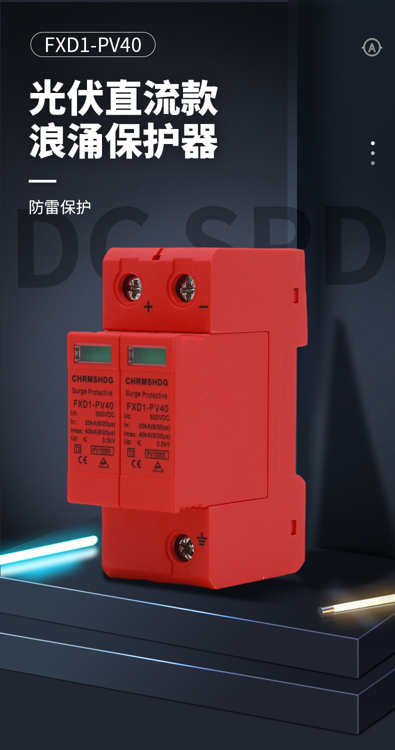 Защита от перенапряжений постоянного тока SPD PV молниезащита 2P разрядник 40KA Защита от перенапряжений DC1000V Внешняя торговля