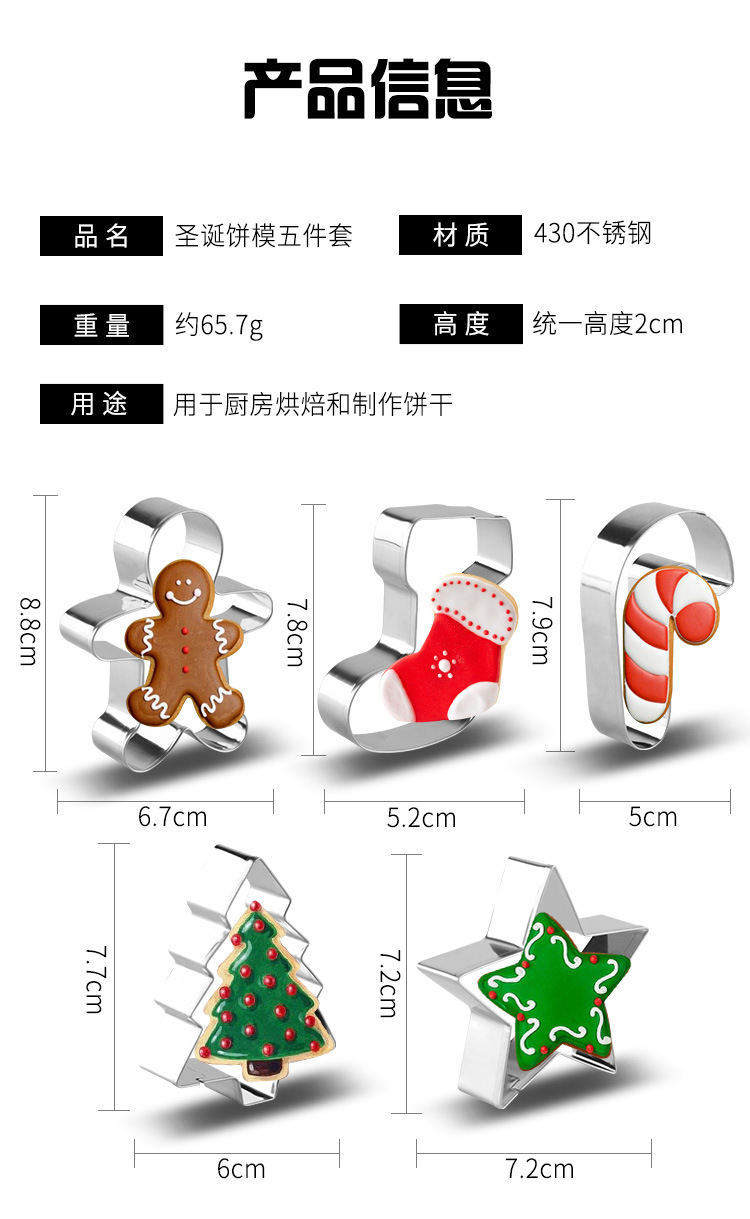 Производитель трансграничный набор из 5 штук Рождественская форма для печенья из нержавеющей стали форма для печенья DIY инструмент для выпечки печенья форма для печенья